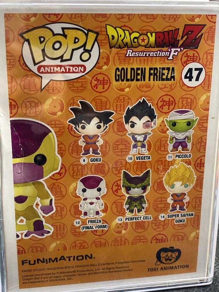 San Diego Comic Con SDCC 2015 Black Eyes Golden Frieza Funko Pop - Damaged Box Black eyes frieza New item Damaged box as pictured dm for any questions no returns. So please see pics Hardcover box included