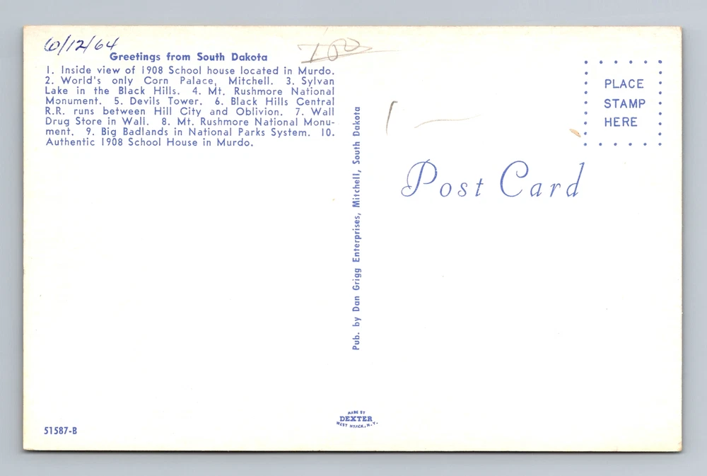 Region: South Dakota Unit of Sale: Single Unit Type: Printed (Lithograph) Subject: Cities & Towns City: South Dakota Size: Standard (5.5 x 3.5 in) Postage Condition: Unposted Era: Vintage Material: Paper Original/Licensed Reprint: Original Country/Region of Manufacture: Unknown Country: USA Theme: Cities & Towns