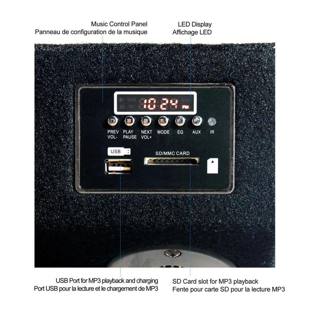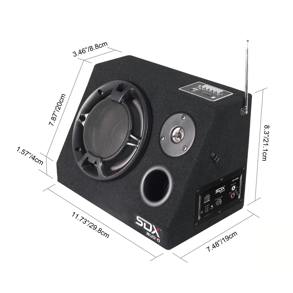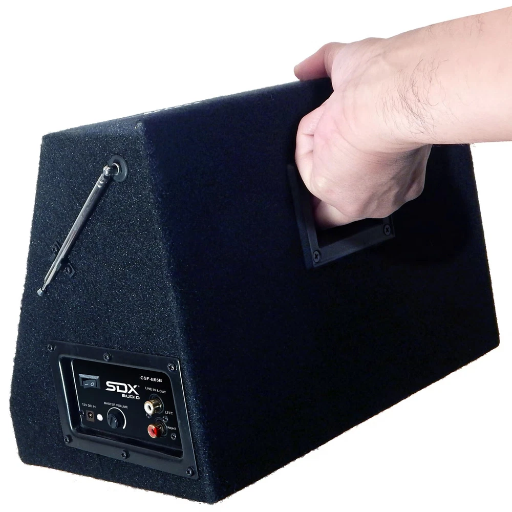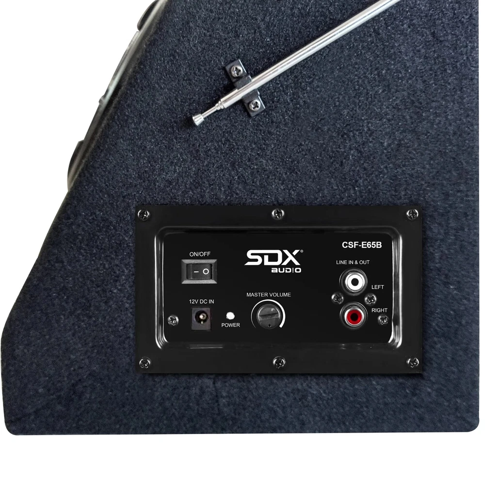 CSF-E65B The most ingenious sound system we've ever seen! It's perfect for picnics, outdoor parties, the beach & more. Plus it will blow you away with 200 watts of raw power. The Bluetooth function allows you play music from any Bluetooth enabled digital player or smart phone wirelessly. It has an FM digital tuner plus AUX inputs so you can listen to tunes from your iPod, MP3 player, CD player and more! You can download MP3 music into USB Flash Drive or SD card; then play music by insert it to USB or SD slots. Features LED display, RCA inputs/outputs, AUX input, AC/DC operation, 6-1/2" woofer and super 3" tweeter. 6.5” woofer with paper cone foam edge, Super 3" tweeter and built-in amplifier with 200W Max output power Bluetooth function allows playing music wirelessly with SD/MMC card and USB Reader; can play MP3 music directly AUX-in port allows for a wired connection with other portable devices, such as MP3 player, iPod, iPhone and other cell phones Built-in FM Radio Receiver with auto scan and memory function with RCA cable input and output terminal (RCA cables not included) Dual Power: 110V AC and 12V DC USB port with 5V/2A power, it can charge any cell phones or tablets Return Policy Please return the item in its original box, unused condition, with all accessories and packaging included. Restocking Fee Please note that returns initiated due to buyer's remorse, sizing issues, or dislike of the item (discretionary returns) may be subject to a restocking fee of up to 15%. The final fee percentage will be determined based on the condition of the returned product.