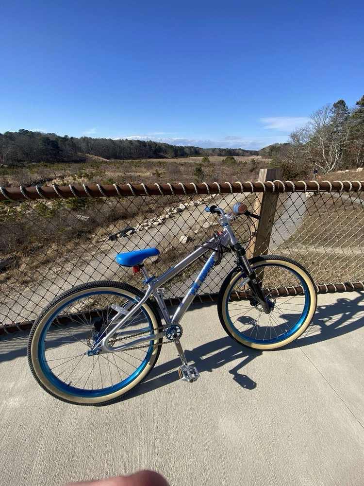 This bike is a beast! The suspension is super smooth, and the new back tire grips perfectly. The blue and tan color combo looks sharp, and the upgraded tubing makes rides way more reliable. Super fun to ride—highly recommend!
