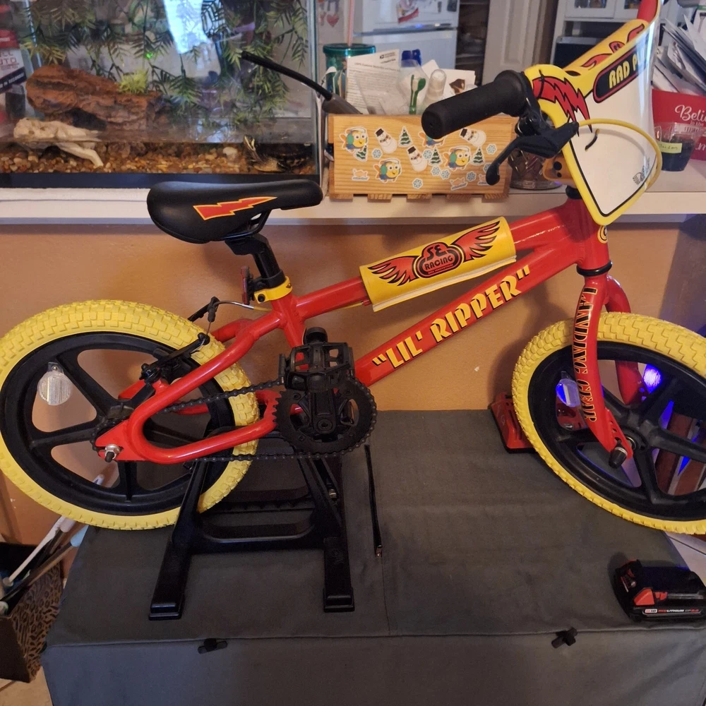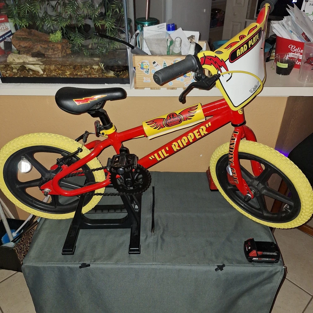 16” Lil' Ripper is one of the raddest kid’s bikes that we’ve ever made. Featuring a lightweight aluminum PK Ripper style frame and Landing Gear forks, this bike will make BMX dads green with envy. Add in the new Skyway Tuffwheels, SE Rad Plate, and 2 wheelie pegs. Message me for more details can work out a deal.