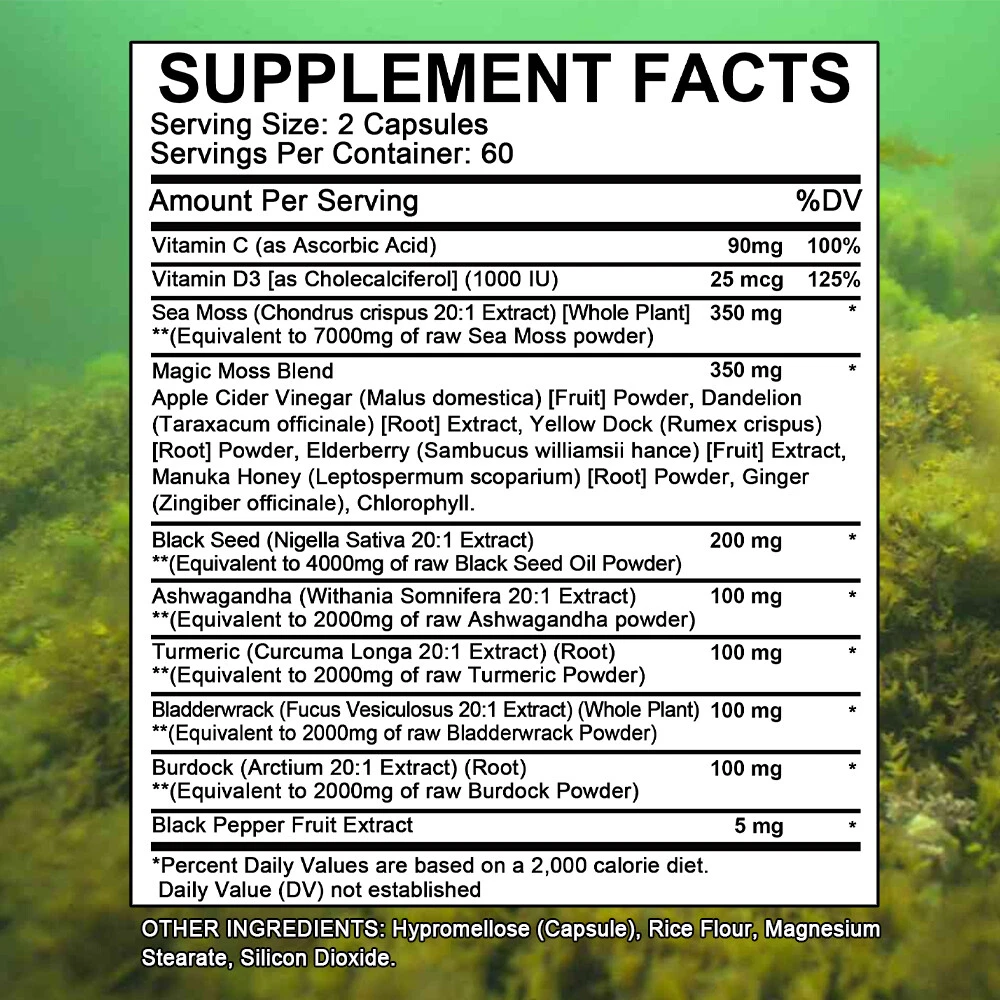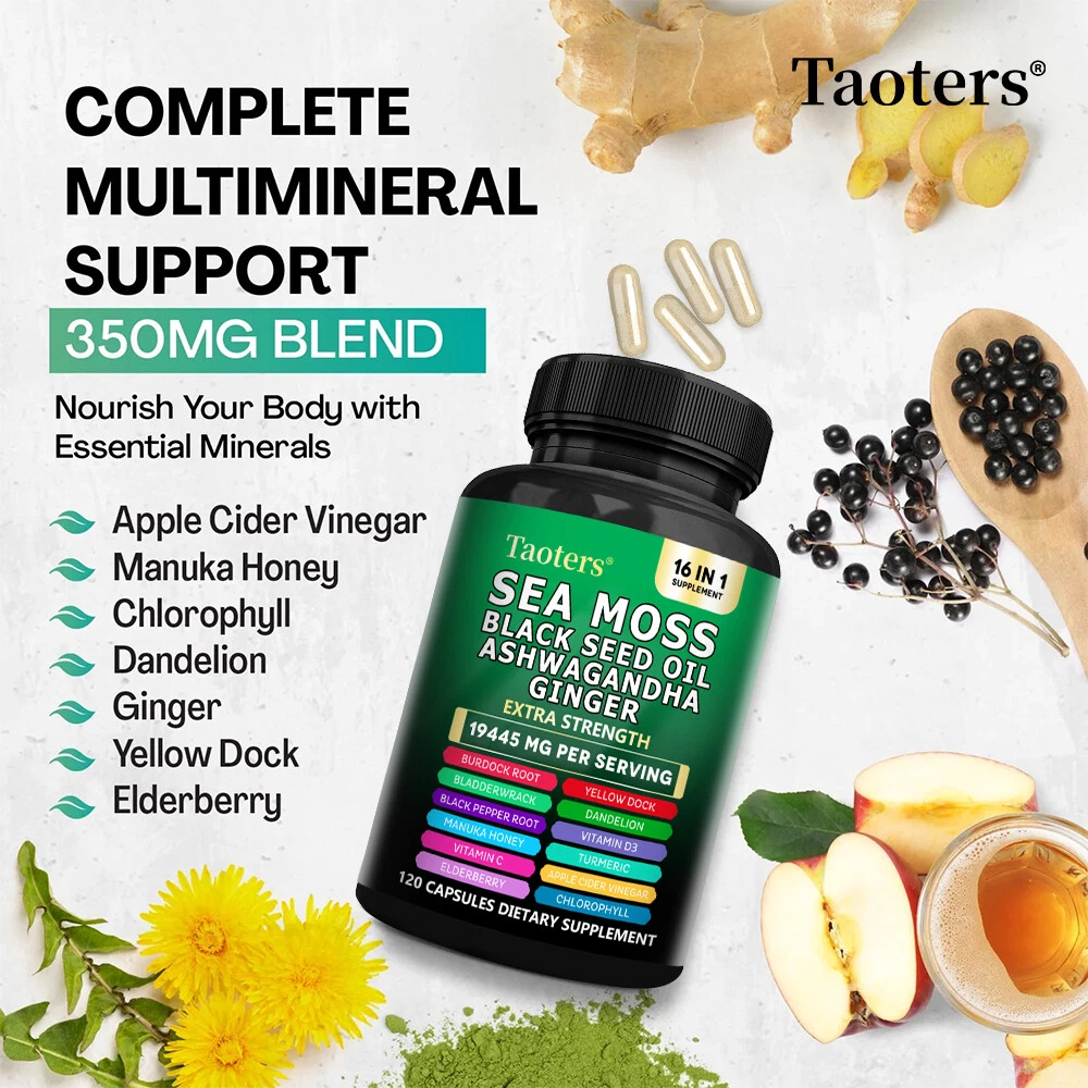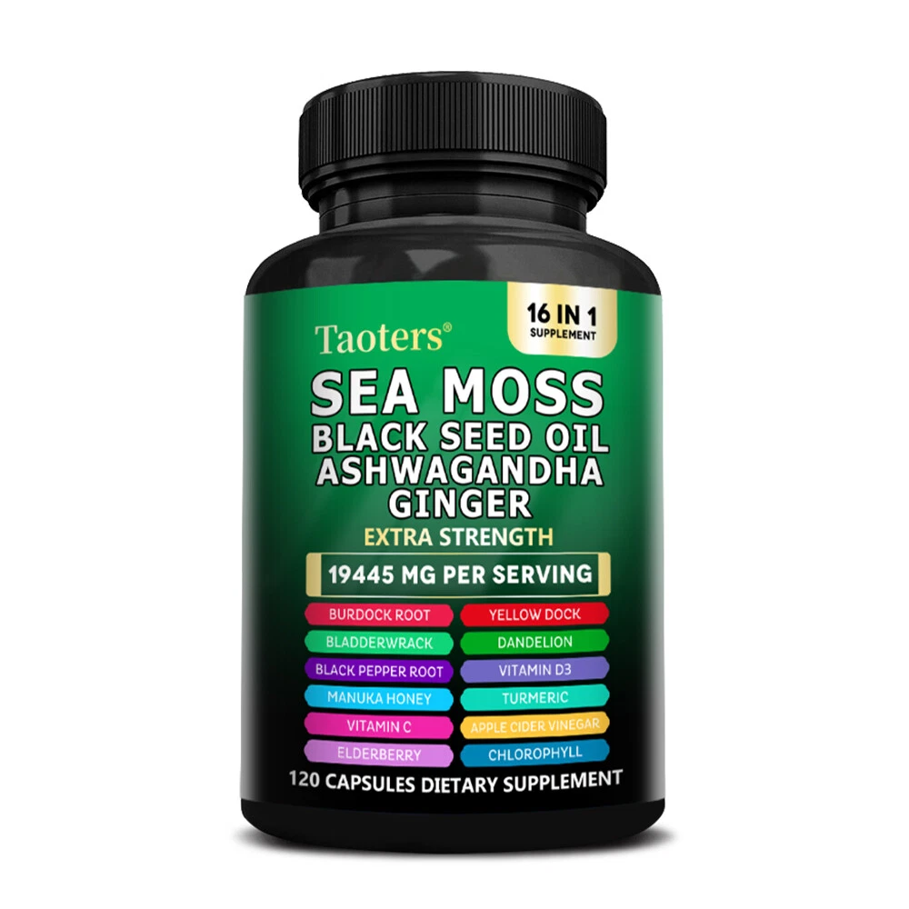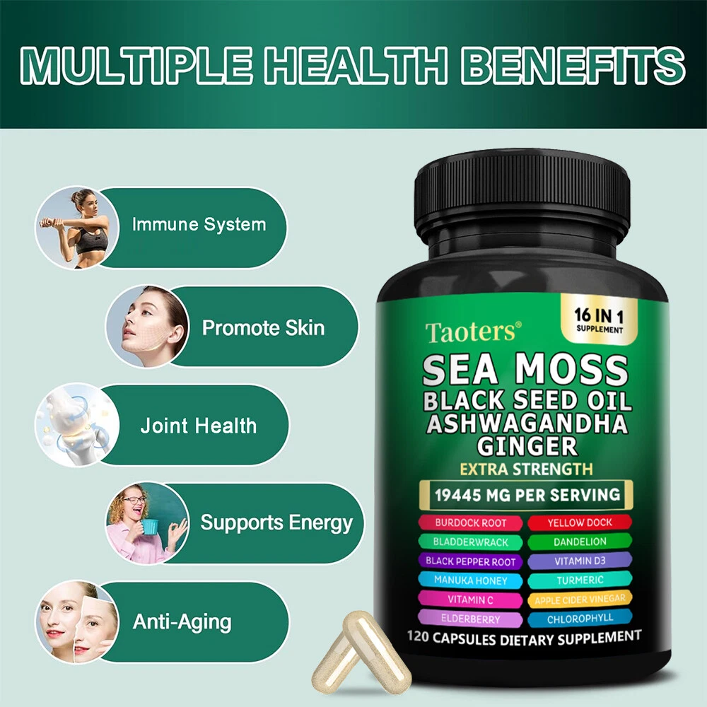 eBay Welcome to our store About the item Sea Moss Descript ion Taoters Sea Moss Capsules For Women and Men - Our Seamoss Capsules and Black Seed Oil for hair includes 16 ingredients such as Turmeric Curcumin Capsules, Bladderwrack capsules, Burdock roots, Chlorophyll and more! Sea Moss capsules with black seed have been combined and the results are amazing. The Raw Sea Moss and Black Seed Oil Capsules You’ve Been Looking For - Taoters provides 6 full-dose products in one, containing a full Irish Sea Moss Powder, Black Seed Powder, Ashwagandha Extract, Bladderwrack Powder, and Burdock Root Powder in a convenient all in one supplement! Finally, irish sea moss wildcrafted, black seed, ashwagandha powder, bladderwrack herb and burdock root Capsules have been packed into one convenient solution that's quick and easy to take. Introducing the MultiMineral Blend - Sea Moss Capsules, Black Seed Oil Capsules, Ashwagandha Root, Bladderwrack Capsules and Burdock Root Capsules that contain 10+ powerhouse ingredients, turmeric curcumin capsules, Apple Cider Vinegar, Chlorophyll, Manuka Honey, and more! These sea moss bladderwrack burdock root capsules are alternatives to sea moss gummies, black seed oil gummies, and ashwagandha gummies for men. Not usual sea moss raw organic, wildcrafted sea moss gel or ashwagandha supplements. A Powerful All In One Supplement - Taoters is overflowing with potent Sea Moss Supplement, Black Seed Oil capsules, Aswagandhada capsules, Burdock Root, Bladderwrack and turmeric powder. Clear out those countless supplements in your supplement cabinet, and replace it with just one seamoss powder, black seeds oil, aswagandhada capsules, and burdock supplement 16-in-1 formula from Taoters. We made Irish seamoss bladderwrack burdock capsules better by adding black seed. Vetted and Trusted Ingredients - We pride ourselves in offering quality seamoss raw, black seed oil health benefits, ashwagandha root, burdock root, and bladderwrack supplements for our customers. Our seamoss capsules, black seed cumin and ashwangha supplements formulas are proudly made to create trusted seamoss and bladderwrack capsules, black seed cumin oil, ashwagandha for men and bladderwrack supplement. How to take As a dietary supplement, take 2 capsules daily. Storage After opening, please seal and store in a cool place away from direct sunlight. suggestion Keep out of reach of children Fast Shipping Easy return Great support 100% Satisfaction Shipping Returns Payment Feedback Contact Us Shipping All the items will be dispatched within 2 business day after the payment is clear. We are not responsible for any custom duty or import tax. Returns 1. If you need return, please contact us with Email before open a case, let us know the detailed problem and send us some pictures for confirmation. 2. All returned items must be in the original packaging and provide us tracking number, specific reason for the returns. Payment eBay Accepts The Following Payment Methods: 1.Visa 2.Mastercard 3.PayPal 4.Apple Pay 5.Google Pay 6.American Express Card Feedback Customer satisfaction is very important to us. If you have any problem with your order,please contact us and we will do our best to make you satisfied, please do not leave a negative feedback before we resolve your problem. We guarantee that your issue will be solved quickly. As long as you are happy with your purchase of , please leave us a positive feedback. Your feedback is very important to us it affects our search placement on eBay. Contact Us If you have any queries, please contact us via ebay. We usually respond within 24 hours on weekdays. Document