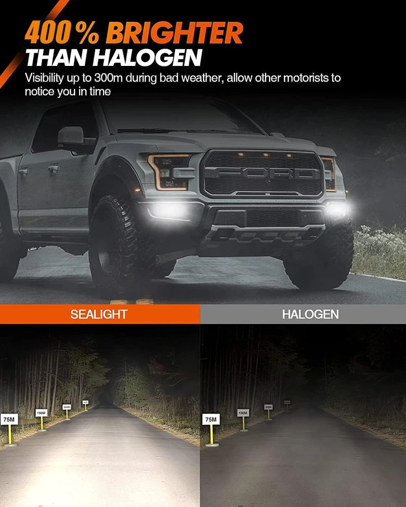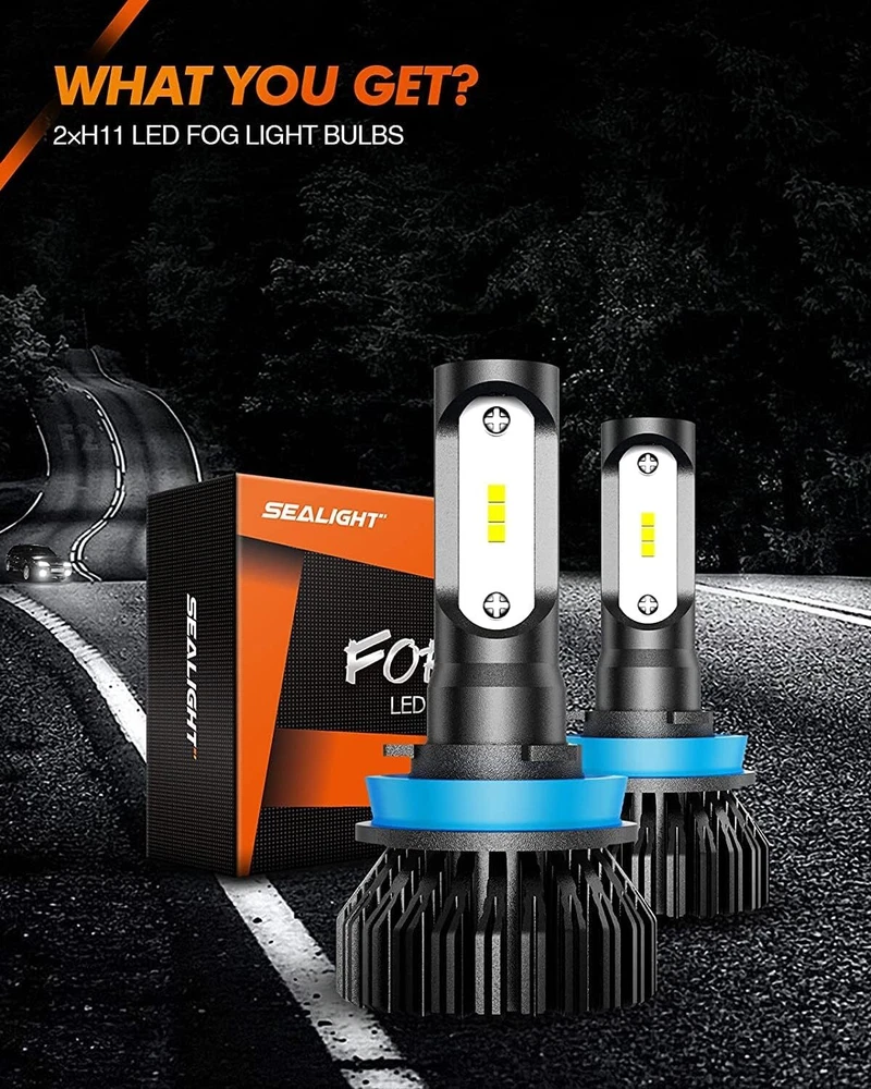 【F2 Series Advantage】400% Superior Brighter, 6000 Lumens/Set, 18w high-power chip.Ultra-focused beam provides over 300m range of illumination. Great upgrade over the stock bulbs, 6000K Xenon White brighter and whiter and give more visual distance 【Strong Penetrating Ability】Professional H11 LED bulbs have high light conversion rate and excellent light-gathering performance. Perfect mimic the halogen bulb design , with strong penetrating ability and high recognition. Street signs and paint lines can be clearly seen, even in bad weather 【10-Minutes Installation】Plug-and-play, no-polarity feature design, Compatible fitment size design, perfectly fit into your housing. No extra wiring or parts are needed, just a direct replacement of the factory halogen bulbs 【30000+ Hours Lifespan】With intelligent temp control and aviation aluminum heatsink, external power supply, 40% higher heat reduction, ensures maximum LED bulb life up to 20-year Life. Power consumption was reduced by 70%, reducing the need to replace the bulb 【Fit 98% Vehicles】No radio interference and Canbus ready. Fit to H11/H8/H9/H16 LED bulb and fog light. CANbus-Ready bulbs are designed by a professional r&d team for most models in the US, reducing the hassle of buying the wrong products. SEALIGHT F2 Series H11 LED Bulbs ( Pack of 2) Model H11/H16/H8 Position LED Bulbs, Fog Light or DRL Color Temp 6000K White Lumens 6000lm/set IP Rate IP67 Wattage 18W Lifespan 30000hrs Housing Material 6063 Aviation Aluminum Non-Polarity Yes Packaging 2 Pack Why Choose The SEALIGHT F2 Series LED Bulb? ✔ High Brightness: The F2 LED Bulbs are brighter than standard halogen bulb and features a superior beam pattern. ✔ 1:1 Identical Size: Perfect mimic the halogen bulb design makes installation easy. ✔ 3,0000Hrs Lifespan: The lightweight external driver provides constant current for stable and longer-lasting performance. ✔ EMC Anti-interference: Built-in smart IC driver, instant start, refuse to wait on rainy and foggy days, no flicker, no interference F2 H11 LED Bulbs are equipped with 6000lm/bulb high illumination and 18w/bulb high power 6 pieces advanced chips The full body of H11 LED Bulbs is equiped with aluminum material speeds up heat dissipation, making the lifespan more than 30000 hrs Using the most advanced packaging technology. IP67 waterproof rating ensures safe driving even in extreme weather conditions The power supply is separated with lights body, which will further accelerate heat dissipation. This design extends lifespan of lights SEALIGHT H11 LED Bulbs have a service life of 100 times that of halogen, and about 10 times that of HID IP67 high waterproof rating, with excellent visibility, it can clearly illuminate the road even in bad weather Customer Frequently Asked Questions Questions: Will these LED bulbs fit my vehicle? Answer: The Website Filter System may not be 100% accurate or up to date. Please check your owner’s manual or search the "automotive bulb finder" online to confirm the bulb size before purchasing. Questions: Will these LED bulbs can use as daytime running lights? Answer: Our bulbs can function as LED Bulbs, Fog Light or Day Running Light as long as the bulb size matches. Questions: How to install H11 LED Bulbs? Answer: Step 1 Take out the dust cover, pull the plug and take out the old bulbs Step 2 Position the 3 slots and turn clockwise for 45°to be in 3 and 9 o'clock position Step 3 Close the dust cover. The halogen bulb would be extremely hot after shutting down the engine. To avoid burns, please wait at 2 hours before replacing the lamps. Please remember to wear gloves for installation. That could avoid the lamp beads burn out for touching sweat. To avoid burns, please don't touch the bulbs for 15 mins after switching off the lights. After installing the bulb, check the lighting. Payment 1) we accepts all major credit cards via PayPal: MasterCard, Visa, American Express and Discover. 2) We will only ship to the confirmed PayPal shipping address given with the payment. Please make sure your PayPal and eBay address is correct. If not, please correct it before payment. Thank you. 3) If you want to ship to another address, please change your PayPal shipping address before you make payment. 4) To avoid initiating an unpaid item claim, please pay within 7 days. 5) Custom duties, taxes, or charges are not included in the cost you pay to us. Shipping We only ship this item to United States ! 1. We ship to your eBay address. Each package will be shipped by UPS or Fedex with tracking number. 2. Ship within 1 business day once payment completed. Orders placed on weekend will be shipped within 3 days. 4. Seriously promise: Refund or resend will be offered if item still not arrive in 7-10 business days. Just send us an email ,we will give you a satisfied solution as soon as possible. Return Policy If you send us an e-mail, it will be answered within 48 hours during our working hours. Please feel free to contact us if you have any questions: Dear my friend,we appreciate your support.And our goal is service you well and give you a pleasant shopping time in our store. ✅Dear customer, when you want to return or exchange goods (Please contact us first, instead of directly initiating a dispute) 1: Contact the seller first 2: Send pictures: outer packaging&scanned labels&item itself&with complete accessories, etc necessary condition Rule A: The original packaging of the item is in an unused state. Rule B: The outer packaging must not have any damage. 3: Obtain return label 4: Delivered Projects - Payment Repayment ✅A 15% restocking and shelving fee will be charged for returns or exchanges that are not caused by the seller and are in good condition. Exchange will not charge restocking fees or shipping fees due to transportation errors ✅Priority In case of the following reasons, the freight will be borne by the buyer 1: Unexpected order 2: Find a better price 3: Change your mind 4: Buy more items