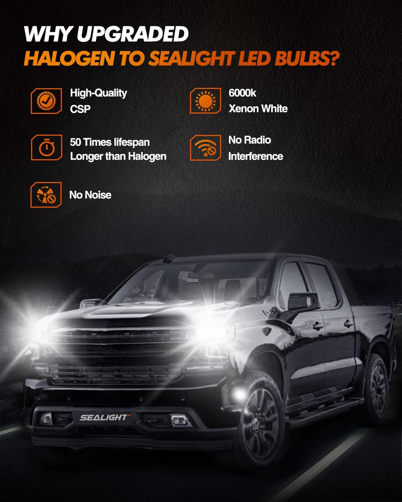 SEALIGHT H13 LED Headlight High/Low Beam Bulbs Super Bright 6500K 18000LM CANBUS [400% Brighter Than Halogen] Top Automotive Grade LED chips with 60W, 12,000LM per pair, 6500K cool white. The S1 H13 LED bulb is 4 times brighter than halogen bulbs, with clear visibility and perfect beam pattern, so you can enjoy good vision while driving at night. [Optimum Beam Pattern] The bulb has a super focused beam pattern,so you can see farther and wider at night. [Over 50,000Hours Lifespan] With an extended lifespan of over 50,000 hours,S1 H13 bulbs have longer lasting illumination compared with halogen bulbs.Besides,the fanless design is more compactand silent ensuring a longer lifespan. [10 Minutes Quick Installation] The S1 H13 Bulbs almost 1:1 For MINI design same as halogen, perfectly fit into your housing and factory sockets without any modification, just plug and play. It only requires 10minutes during the installation,no other tools are needed. [CanBus Ready] The bulbs can work well for 98% of CanBus-equipped vehicles. It means they will work with your vehicle’s advanced computer system,so when your vehicle’s computer reads them,they respond back correctly. Warm Tips: 1. The Filter System may not be 100% accurate or up to date, please check your owner’s manual. If you are still unsure of your bulb size, please do remember to send a message to us on your vehicle make, model, year, and other important information for further confirmation. 2. If your bulbs are flickering or if your CanBus shows “Error” after on, we also sell a professional CanBus Decoder. 3.For Dodge RAM 1500, 2500, 3500, 4500, 5500 from year 2006 to 2009 and For Jeep Patriot 2007 to 2017, after install this H13 LED bulb, if it is flickering(not quality problem), you need to buy this special resistor decorder to fix the problem. Payment Shipping Return Policy Contact Us Warranty 1) we accepts all major credit cards via PayPal: MasterCard, Visa, American Express and Discover. 2) We will only ship to the confirmed PayPal shipping address given with the payment. Please make sure your PayPal and eBay address is correct. If not, please correct it before payment. Thank you. 3) If you want to ship to another address, please change your PayPal shipping address before you make payment. 4) To avoid initiating an unpaid item claim, please pay within 7 days. 5) Custom duties, taxes, or charges are not included in the cost you pay to us. We only ship this item to United States ! 1. We ship to your eBay address. Each package will be shipped by UPS or Fedex with tracking number. 2. Ship within 1 business day once payment completed. Orders placed on weekend will be shipped within 3 days. 4. Seriously promise: Refund or resend will be offered if item still not arrive in 7-10 business days. Just send us an email ,we will give you a satisfied solution as soon as possible. If you send us an e-mail, it will be answered within 48 hours during our working hours. Please feel free to contact us if you have any questions: Dear my friend,we appreciate your support.And our goal is service you well and give you a pleasant shopping time in our store. ✅Dear customer, when you want to return or exchange goods (Please contact us first, instead of directly initiating a dispute) 1: Contact the seller first 2: Send pictures: outer packaging&scanned labels&item itself&with complete accessories, etc necessary condition Rule A: The original packaging of the item is in an unused state. Rule B: The outer packaging must not have any damage. 3: Obtain return label 4: Delivered Projects - Payment Repayment ✅A 15% restocking and shelving fee will be charged for returns or exchanges that are not caused by the seller and are in good condition. Exchange will not charge restocking fees or shipping fees due to transportation errors ✅Priority In case of the following reasons, the freight will be borne by the buyer 1: Unexpected order 2: Find a better price 3: Change your mind 4: Buy more items/make mistakes/misread model information ✅Please note Missing accessories/quality issues/transportation damage, etc Please contact us first to obtain a good solution, rather than directly opening a return dispute. Thank you very much for your understanding. I hope we have a pleasant cooperation! Contact us if you have any question, Give us a chance to serve you, negative feedback could not solve anything, communication Please! ❎ (NO) Three stars is LOW star, NO 1,2,3 stars PLEASE! ✅(YES) Please give us Five-star! Have Question or Problem?? Step 1: Contact seller Step 2: Select the 1st topic: I have a question about using my item or I want to send the seller a message. NO others please! Step 3: Describe your question clearly; we will give you the best solution Please leave five stars positive feedback positive comment and Five-Stars. * We maintain a high standard of excellence (5 star rating) and strive for 100% customer satisfaction! * Feedback is very important to us. * We would like you to contact us immediately before giving us neutral or negative feedback so that we can address your concerns to our satisfaction. * If we don't understand these problems, we won't be able to solve them! * After understanding the problem, we will be able to give you a satisfactory answer! It's highly appreciated you leave us positive feedback and 5 star rating comments if you are satisfied with our service! Your comment is very important in our business success. Warranty ✅ Free repair: During the warranty period, if the product fails due to manufacturing defects, component failure or workmanship problems, please contact us to provide corresponding handling methods. ✅ Warranty period: The warranty period is usually calculated from the date of purchase, and the specific period may vary depend on the product type and brand. ✅ Warranty terms: The repairer needs to use components and spare parts that meet the technical requirements of the product, carefully record the failure and th
