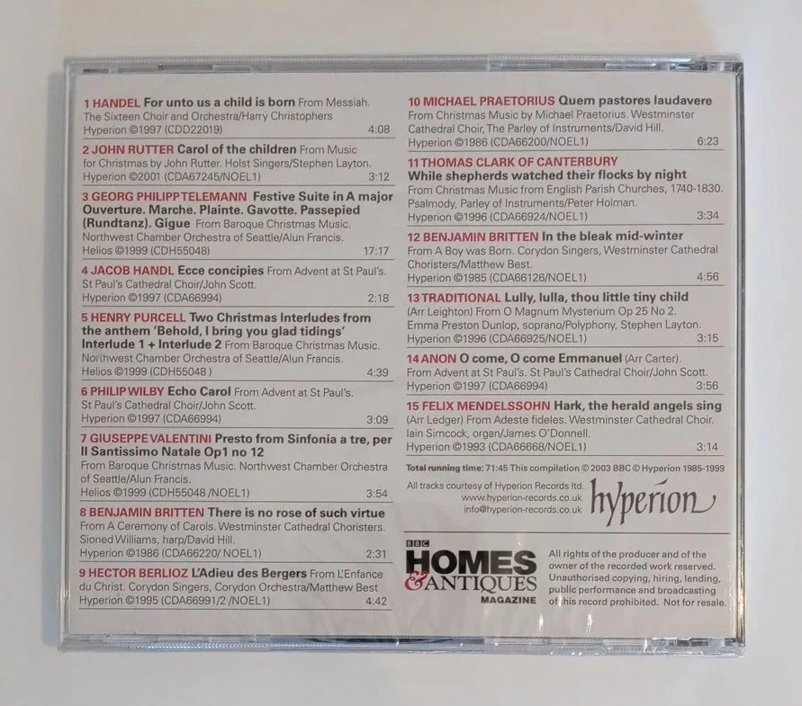 SEASONAL CELEBRATIONS BBC Homes & Antiques Magazine CD 15 Glorious Tracks Christmas/New Year Songs Hymns Classical ,Item Is NEW/SEALED Please See Pictures For The Actual Item You Will Receive & For Track Listing Will Be Packaged Carefully Thanks For Looking.
