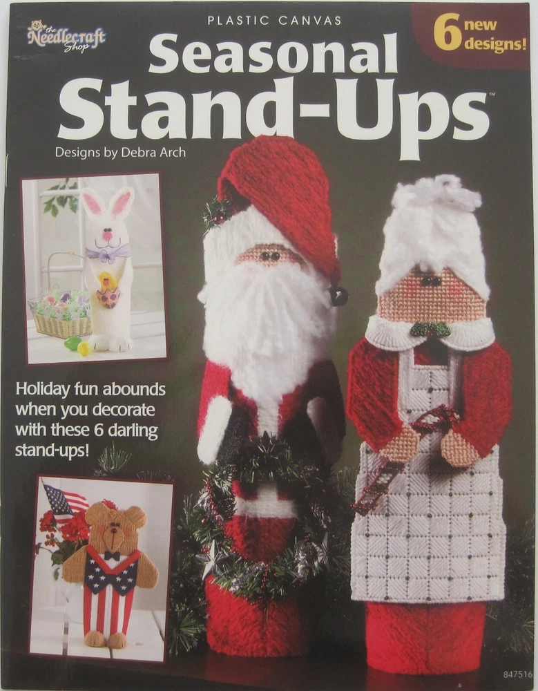 Six patterns in a 32 page book. DESIGN LIST: 1) Santa 2) Mrs. Santa 3) Ghost 4) Turkey 5) Patriotic Teddy Bear 6) Easter Bunny Patterns were designed by Debra Arch