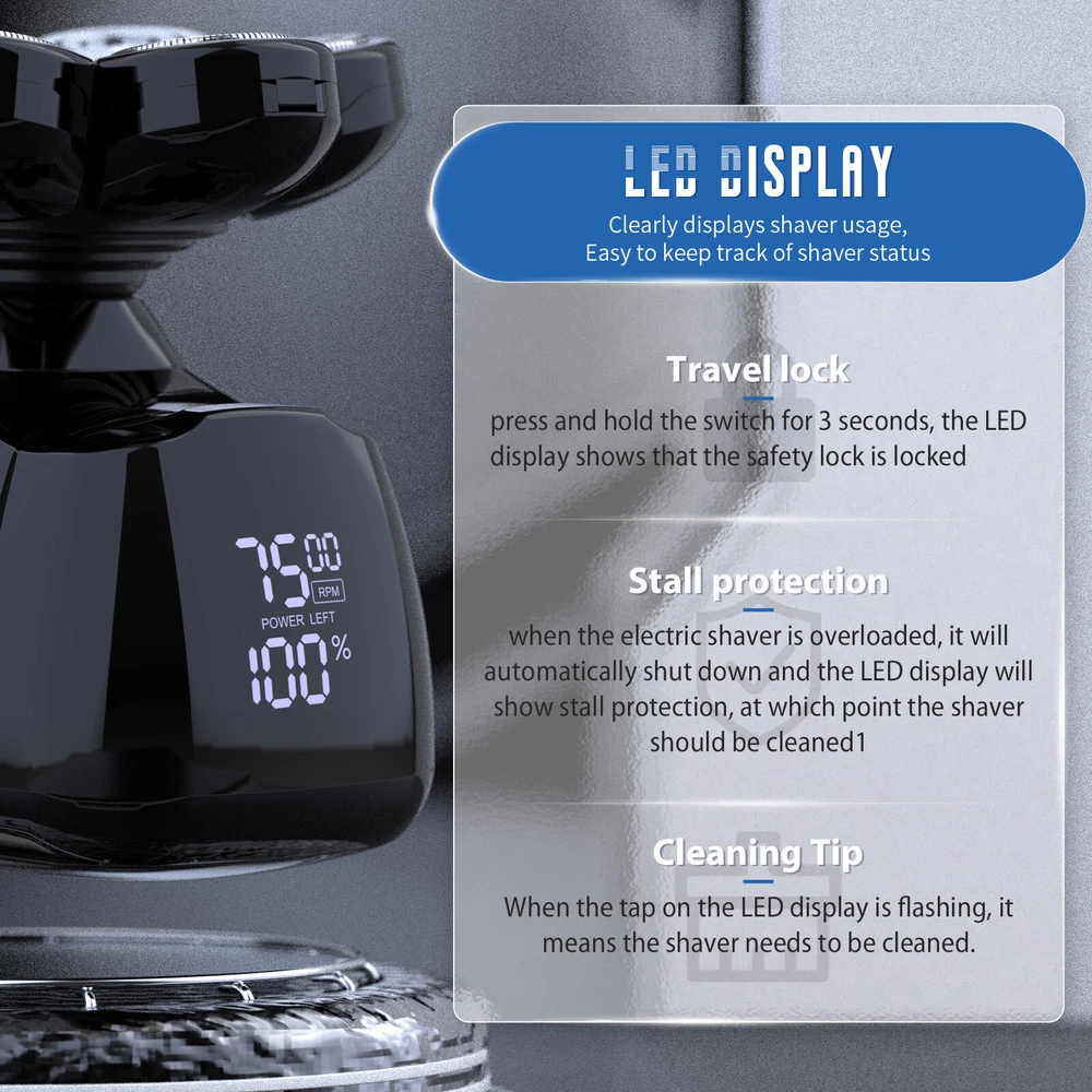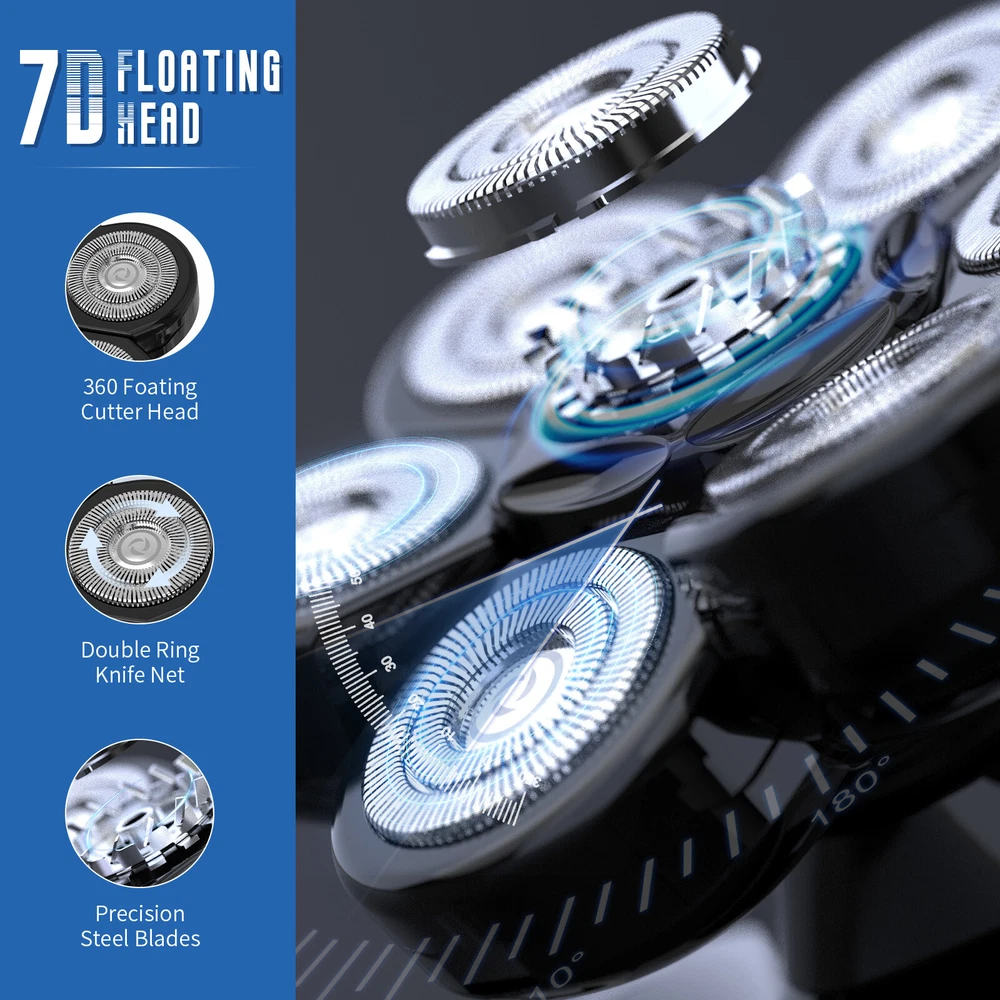 SEJOY 7D Electric Shaver Hair Trimmer IPX7 Dry & Wet Power Razor