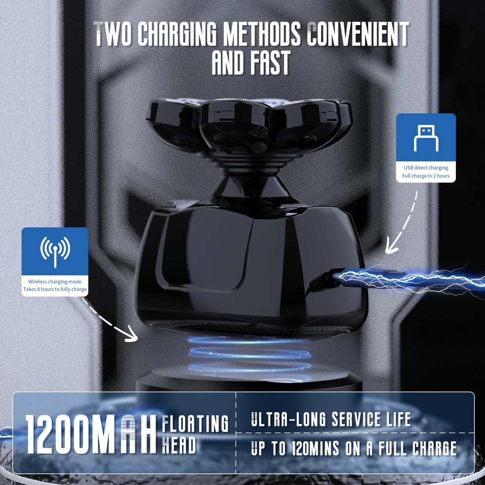 Men Wet/Dry Electric Shaver Trimmer Rotary Razor Beard Shaving USB Rechargeable