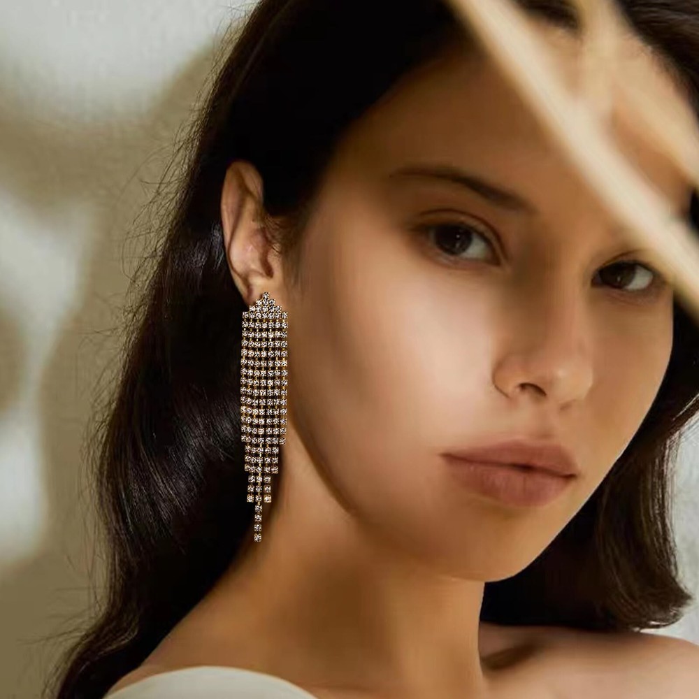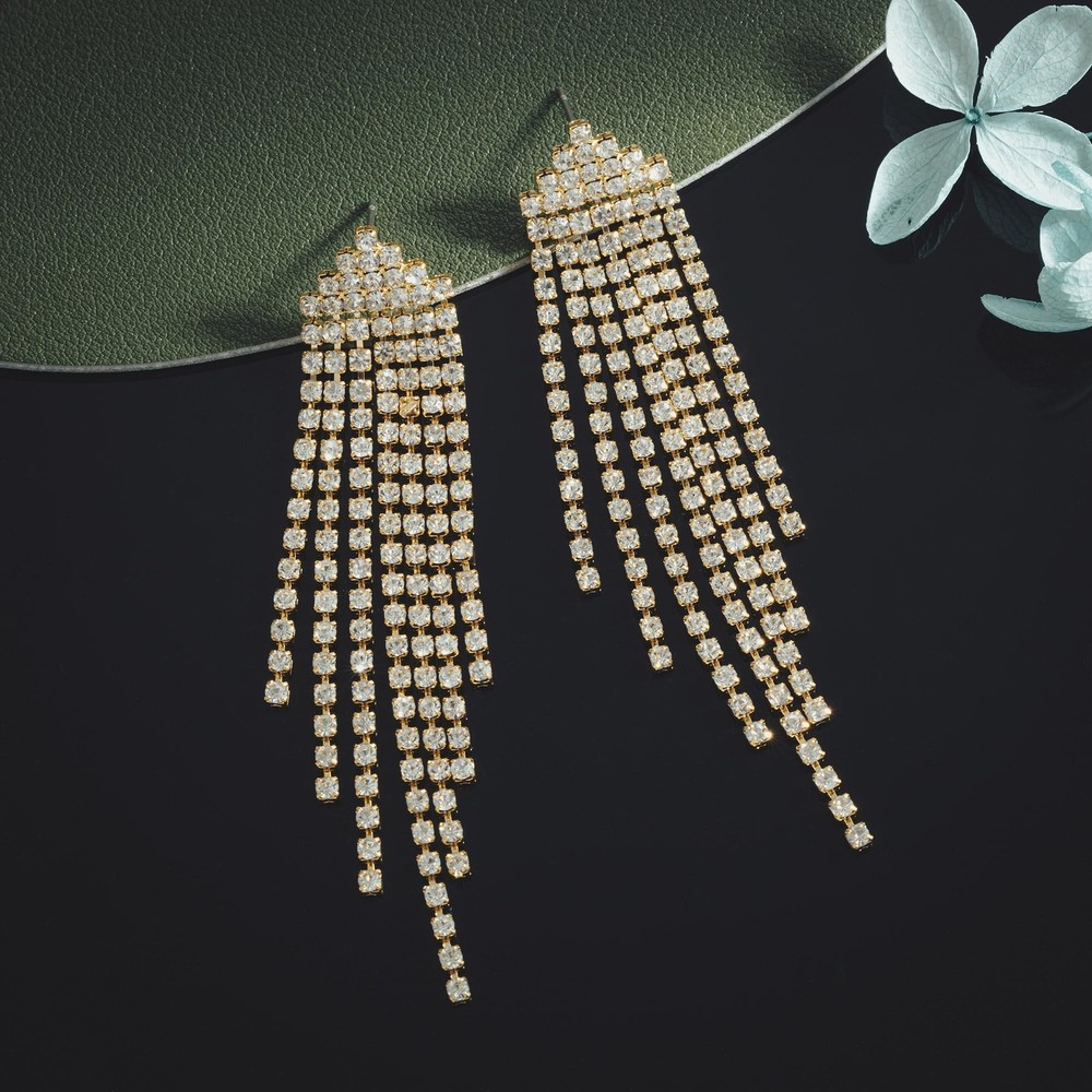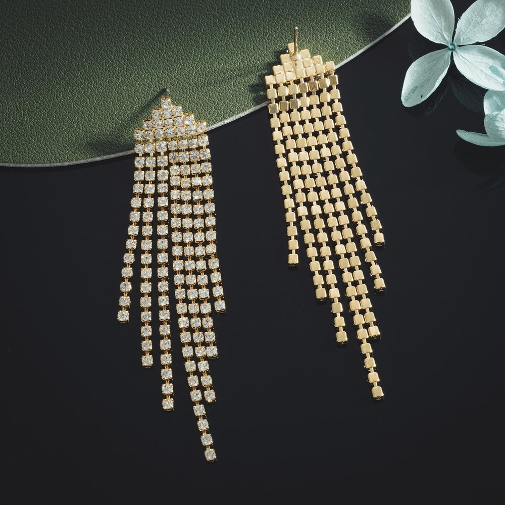 SELOVO Dangling Earrings for Women Long Dangle Crystal Rhinestone Prom Earring Product Details Color: Clear-Gold Tone Brand: SELOVO MPN: EH334-PP UPC: Does not apply EAN: Does not apply Package Dimensions : 2.5 x 2.4 x 0.7 inches; 0.71 ounces Item model number : EH334-PP Department : womens Date First Available : November 2, 2023 Manufacturer : Hong Yi Co., Ltd. Brand, Seller, or Collection Name: SELOVO Material: Rhinestone Gem Type: Rhinestone Setting: Prong Back finding: Push Back Model number: EH334-G These sparkle rhinestone tassel earrings have a statment looking. They are suitable for a night out on the town, a dinner date, a party, a prom, etc. You can wear these vibrant and adorable brooch on a themed party. Statement jewelry for women.