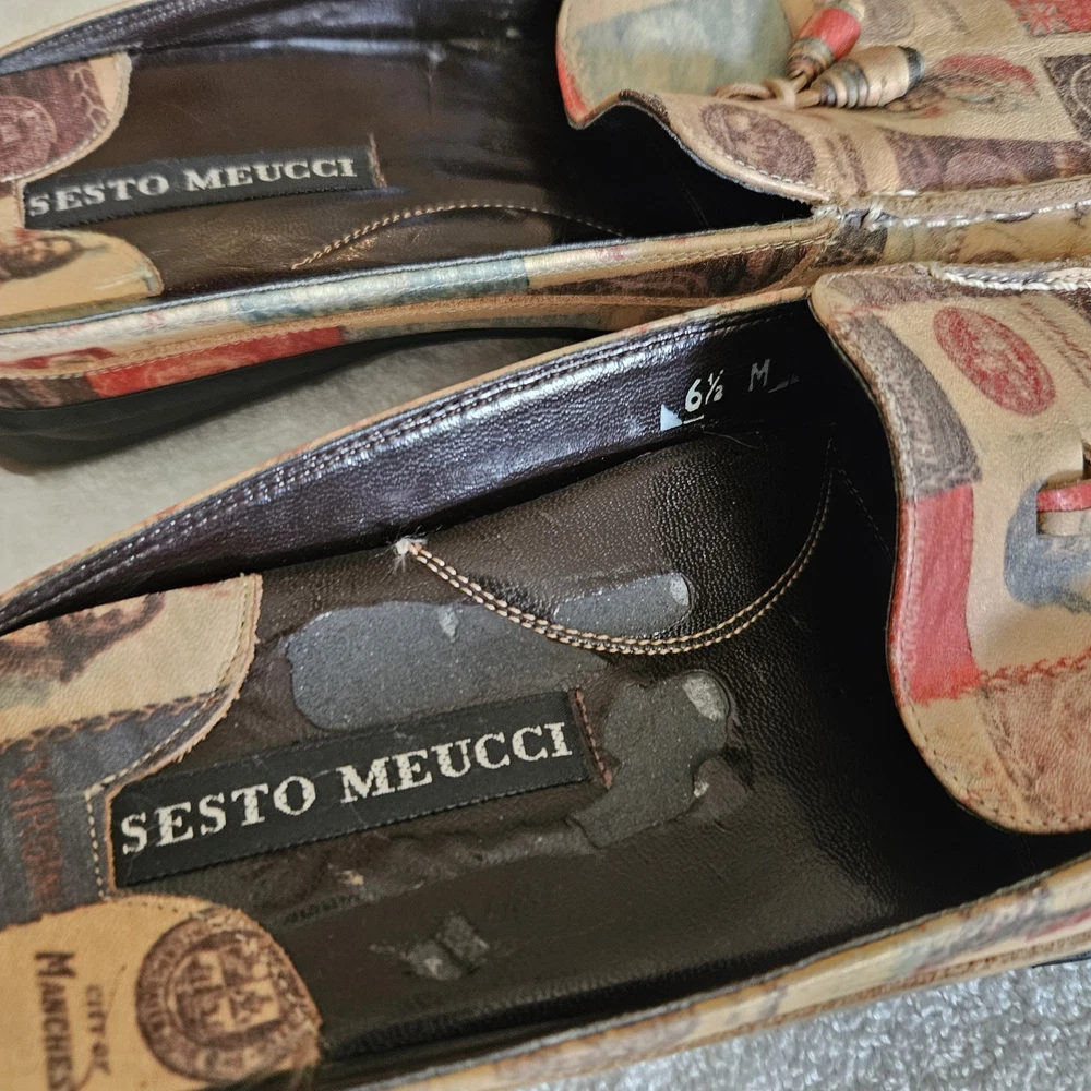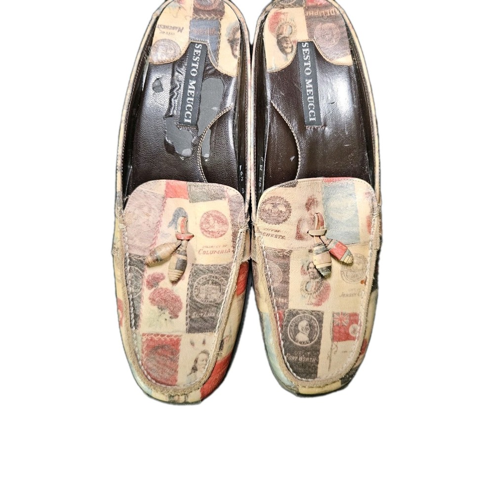 SESTO MEUCCI Magazine Themed Mule Loafer Shoes With A Tassel Size 6.5M