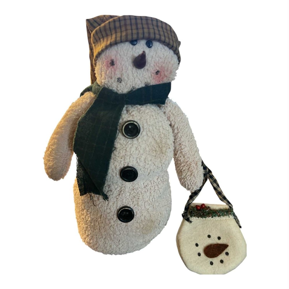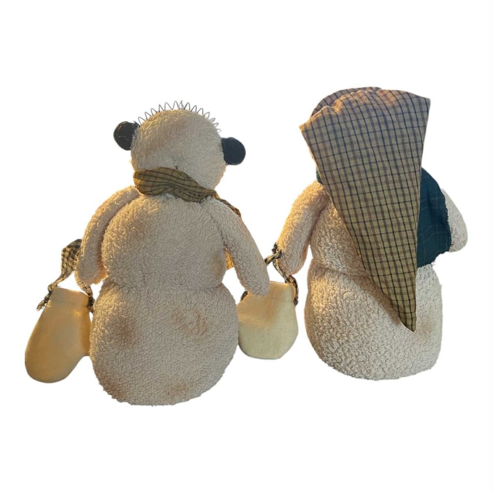 SET OF 2 VINTAGE CLOTH WEIGHTED SNOWMEN SHELF SITTERS MOM & POP HOLIDAY PLUSH DECOR 12" Tall x 8" Across x 5" Deep (Measurements Are Approximate) Weighs 1.5 oz (both together) THESE ARE ADOREABLE AND WOULD LOOK GREAT SITTING ON YOUR SHELF TABLE OR MANTLE!