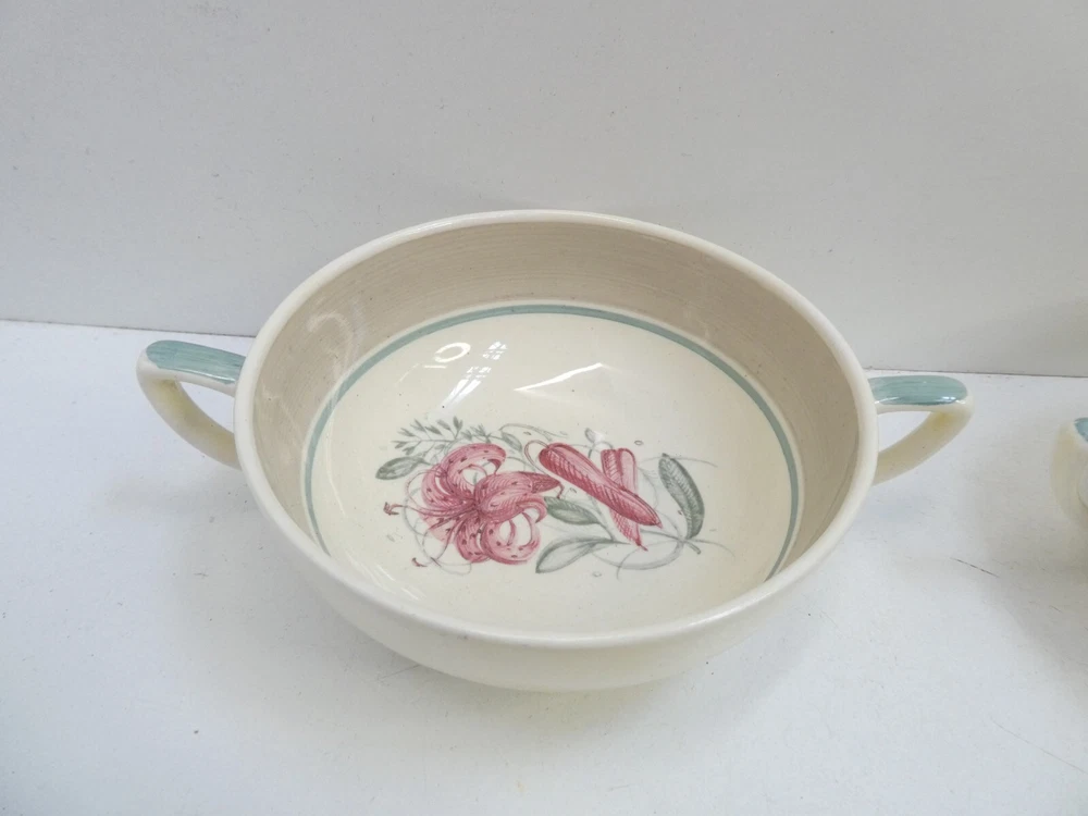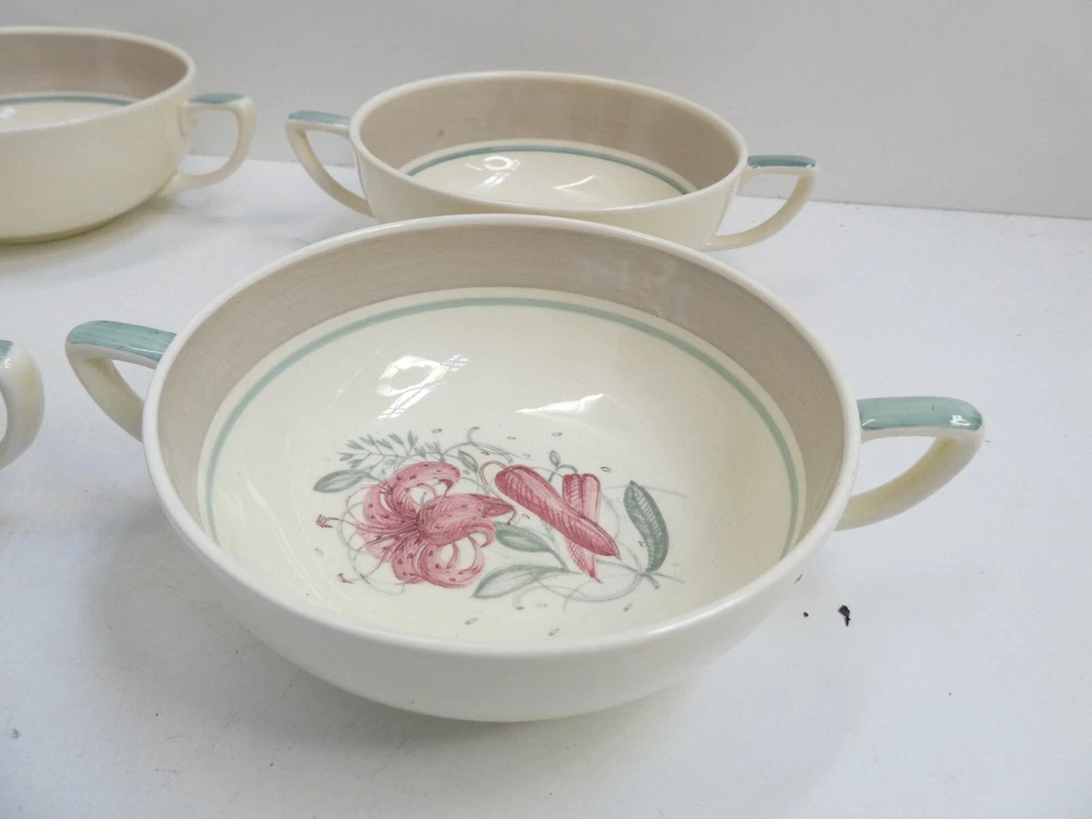 SET4 SUSIE COOPER FLORAL 2 HANDLE SOUP BOWLS RAMMEKINS CROWN WORKS BURSLEM