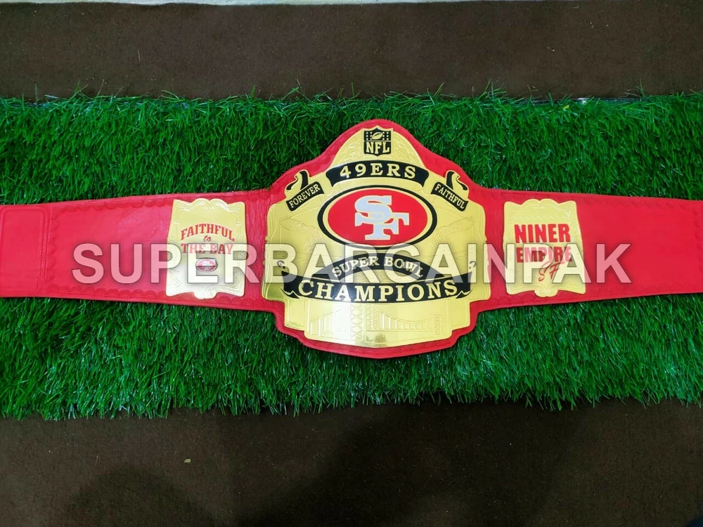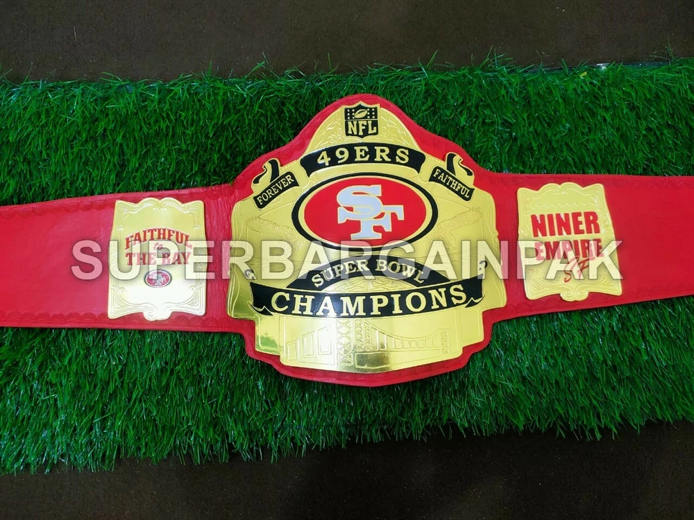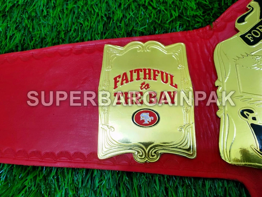 Welcome to our shop ------------------------------------------- We are specialist in manufacturing handmade products:: Our wide range of products include: >>>>Championship Belts WWE | WWF | AEW | UFC | WBC | WCW Product Description *** SF 49ers Championship Wrestling Brass 2mm Belt *** Plate Metal: Brass (Zinc available on request with additional cost) Strap: 100% Leather Largest Waist Size: Fits upto 46'' Belt Length: ~50" Weight: 4.17 lbs | 1.81 Kg Plate Thickness: 2mm (4mm Version available on demand with additional cost) ::The belt is well crafted and manufactured to meet the quality demands of fans:: Get your hands on this marvelous piece now! Note: If you need further details kindly inbox us, we will try to be as responsive as possible. ------------------------------------------- Return Policy: Generally we don't have much complains on our products and we make sure to 100% satisfy our clients. We send the product in well Bubble Wrapped packaging so there is highly unlike chance of getting damaged item. In case there is a damage, we will try to give partial refund or you can ask for full refund within 30 days after returning the belt to origin. NOTE: 1. If you have placed the order by mistake or you have purchased a wrong item then we are not going to refund that. 2. Buyer will pay the shipping fee of returning the belt. ------------------------------------------- Happy Shopping! :)