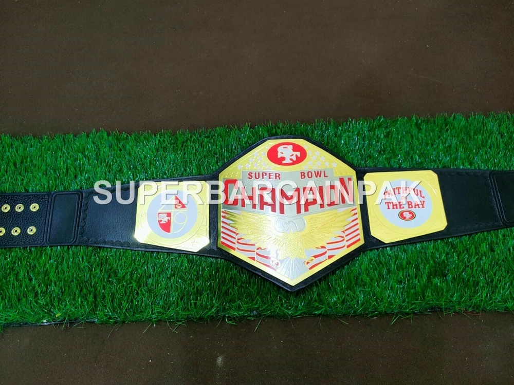 Welcome to our shop ------------------------------------------- We are specialist in manufacturing handmade products:: Our wide range of products include: >>>>Championship Belts WWE | WWF | AEW | UFC | WBC | WCW Product Description ONLY TWO SIDE PLATES *** SF 49ers Championship Wrestling Brass 2mm Belt *** Plate Metal: Brass (Zinc available on request with additional cost) Strap: 100% Leather Largest Waist Size: Fits upto 46'' Belt Length: ~50" Weight: 4.17 lbs | 1.81 Kg Plate Thickness: 2mm (4mm Version available on demand with additional cost) ::The belt is well crafted and manufactured to meet the quality demands of fans:: Get your hands on this marvelous piece now! Note: If you need further details kindly inbox us, we will try to be as responsive as possible. ------------------------------------------- Return Policy: Generally we don't have much complains on our products and we make sure to 100% satisfy our clients. We send the product in well Bubble Wrapped packaging so there is highly unlike chance of getting damaged item. In case there is a damage, we will try to give partial refund or you can ask for full refund within 30 days after returning the belt to origin. NOTE: 1. If you have placed the order by mistake or you have purchased a wrong item then we are not going to refund that. 2. Buyer will pay the shipping fee of returning the belt. ------------------------------------------- Happy Shopping! :)