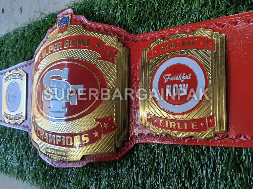 Welcome to our shop ------------------------------------------- We are specialist in manufacturing handmade products:: Our wide range of products include: >>>>Championship Belts WWE | WWF | AEW | UFC | WBC | WCW Product Description *** SF 49ers Championship Wrestling Brass 2mm Belt *** Plate Metal: Brass (Zinc available on request with additional cost) Strap: 100% Leather Largest Waist Size: Fits upto 46'' Belt Length: ~50" Weight: 4.17 lbs | 1.81 Kg Plate Thickness: 2mm (4mm Version available on demand with additional cost) ::The belt is well crafted and manufactured to meet the quality demands of fans:: Get your hands on this marvelous piece now! Note: If you need further details kindly inbox us, we will try to be as responsive as possible. ------------------------------------------- Return Policy: Generally we don't have much complains on our products and we make sure to 100% satisfy our clients. We send the product in well Bubble Wrapped packaging so there is highly unlike chance of getting damaged item. In case there is a damage, we will try to give partial refund or you can ask for full refund within 30 days after returning the belt to origin. NOTE: 1. If you have placed the order by mistake or you have purchased a wrong item then we are not going to refund that. 2. Buyer will pay the shipping fee of returning the belt. ------------------------------------------- Happy Shopping! :)