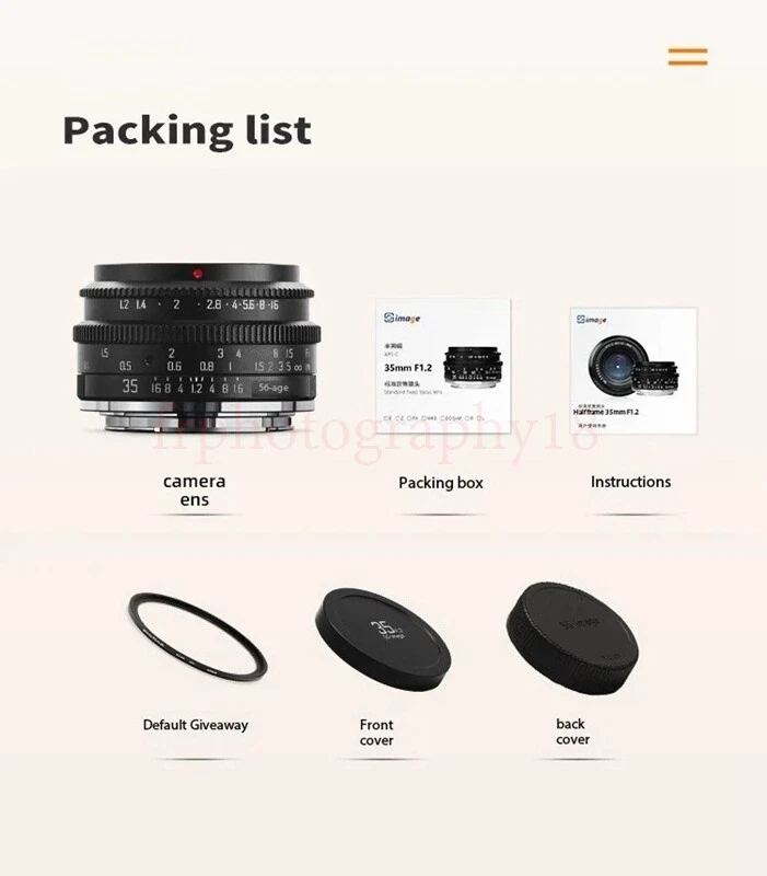 SGimage 35mm F1.2 Large Aperture APS-C Portrait Lens Sony Canon Nikon Fuji M4/3 Hign-concerned Chemical : None Applicable Camera Specifications : APS-C Mirrorless Camera Macro Magnification : 0.170 times Maximum Magnification : 0.170 times Minimum Aperture : F22 Focal Length : 35mm Launch Date : 2016 Package : Yes Weight : 201g-300g Lens Stabilization Type : None Maximum Aperture : f/1.2 Lens UV Filter Size : 46mm Caliber : 48mm Number of Diaphragm Blades : 10 Blades Focus Mode : MF Focus Type : Standard Prime Type : Fixed Focus Lens Full Frame : No Lens Type : Manual Scene Type : Wedding,Business,HUMAN,Sports,Insect,Architecture,Special,Scenery,Still Life,Travel,People Brand Name : JYYXF Origin : Mainland China Certification : CE,FCC Use : Camera Payment Delivery details Terms of sales About us Contact us Payment Warning : every international Order will have inport Tax problem with Customs ,Please clear customs by buyer,we will lower the declare price on invoice Please do not open the Return directly ,any order problem You can send message to us first ,we will solve it very fast ,thank you 1.We accept payment via T/T, PayPal for USD dollars .Alipay and Wechat payment for RMB 2.We will deliver your goods within 20days after payment. 3.We will pack the goods well with exporting packages and bubble wrap to make sure all goods in a good condition during storage and delivery. 4.We usually use express delivery like DHL, UPS, FedEx, TNT and EMS, as we enjoy perfect discount in these companies. 5.We have well-trained and professional sales & after-sale services persons who can speak English fluently. Delivery details Each international package will have inport Tax problem with Customs ,Please clear customs by buyer Terms of sales 100% Official and official product About us China mainland super top seller wholesale company about video studio photography Camera equipment cargo .100% brand original and official Contact us Please send ebay message for asking product , we will reply you in 24 hours ,thank you