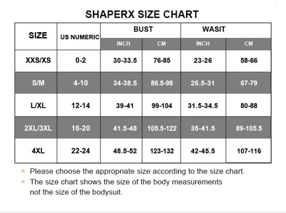 SHAPERX Empower Your Body Bodysuit Tummy Control Style 5213 Size S/M Condition: New item in original packaging. ⭐Smoke and pet-free ⭐Examine photos carefully as they are part of the description. ⭐Compare measurements with a similar piece of clothing you own that fits you well. ⭐If you need more measurements or images, do not hesitate to contact us. ⭐Ships quickly - same or next business day! Returns policy: We want you to be happy with your purchase and we all want to avoid returns. This is the reason we provide careful flat lay measurements. Tag size can be misleading, particularly on vintage items. Please use the measurements provided and compare to a similar item you own that fits you well to avoid returns . If you are not familiar with flat lay measurements, you will need a measuring tape to compare items that fit you well to this item. If you need more measurements or images, do not hesitate to contact us. If you receive your item and it doesn't fit, or is not what you wanted, all we ask is that you return it within 30 days, in the condition we sent it to you in. Please be aware that buyer pays for return shipping. If the item is new with tags, please do not wash or remove the tags. Store tags must be attached for a return. If they are not attached when returned, this will result in less than a full refund. Thank You! 😊