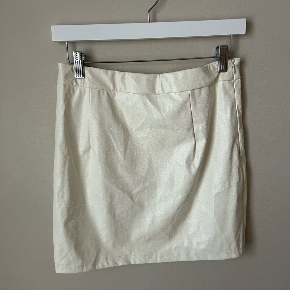 Material: Faux Leather Department: Women Skirt Length: Short Size: M Brand: SheIn Size Type: Regular Type: Skirt Style: Mini Color: White