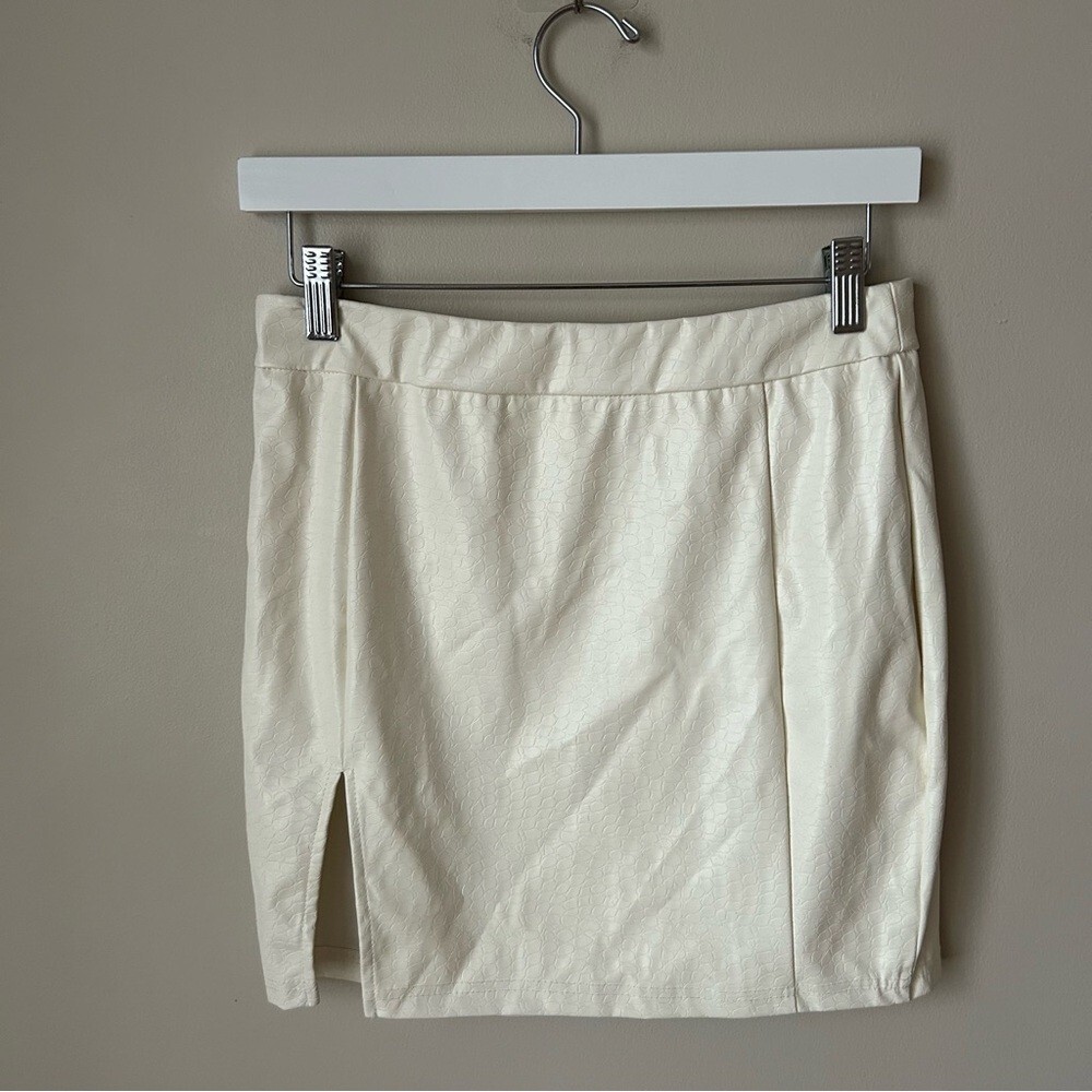 SHEIN White Faux Leather Mini Skirt with Split Hem Size M