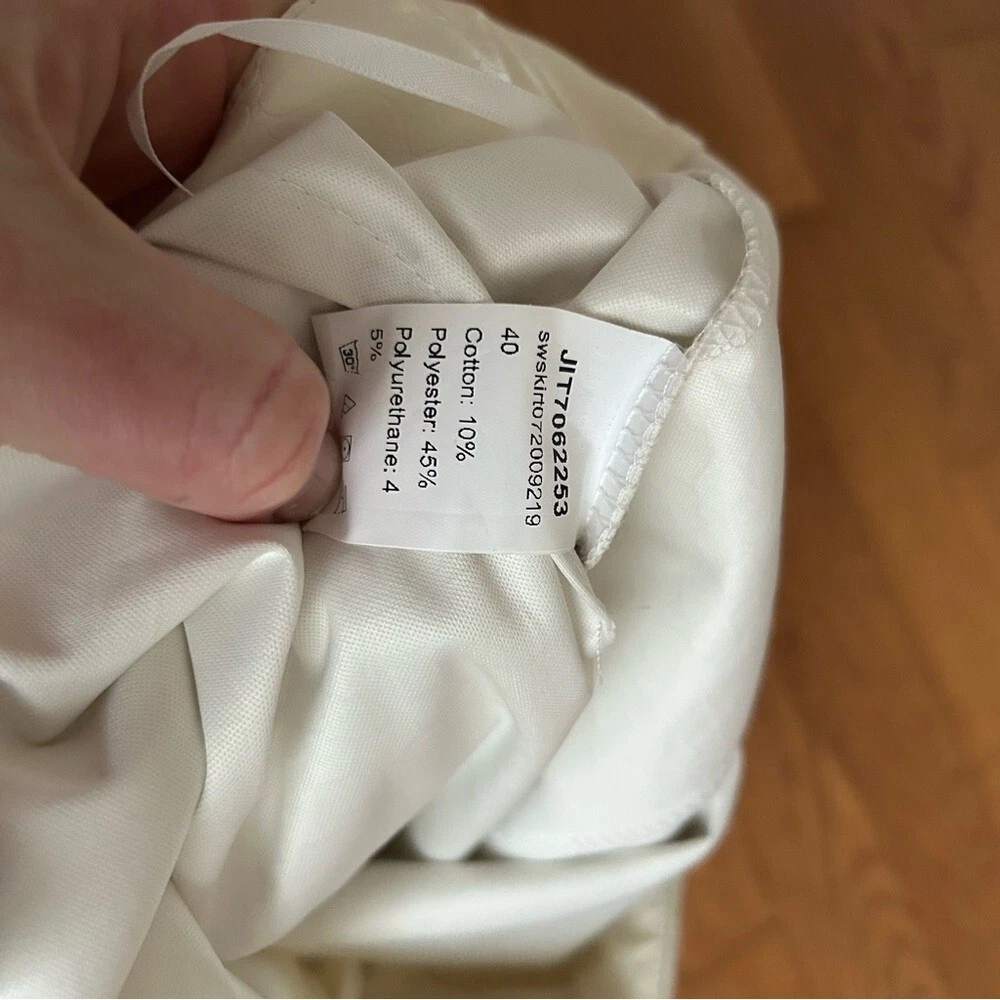 This chic white mini skirt from SHEIN features an asymmetrical design with a stylish slit, perfect for a night out or cocktail event. Its pencil silhouette offers a sleek and modern look, while the high waistband ensures a flattering fit. II20