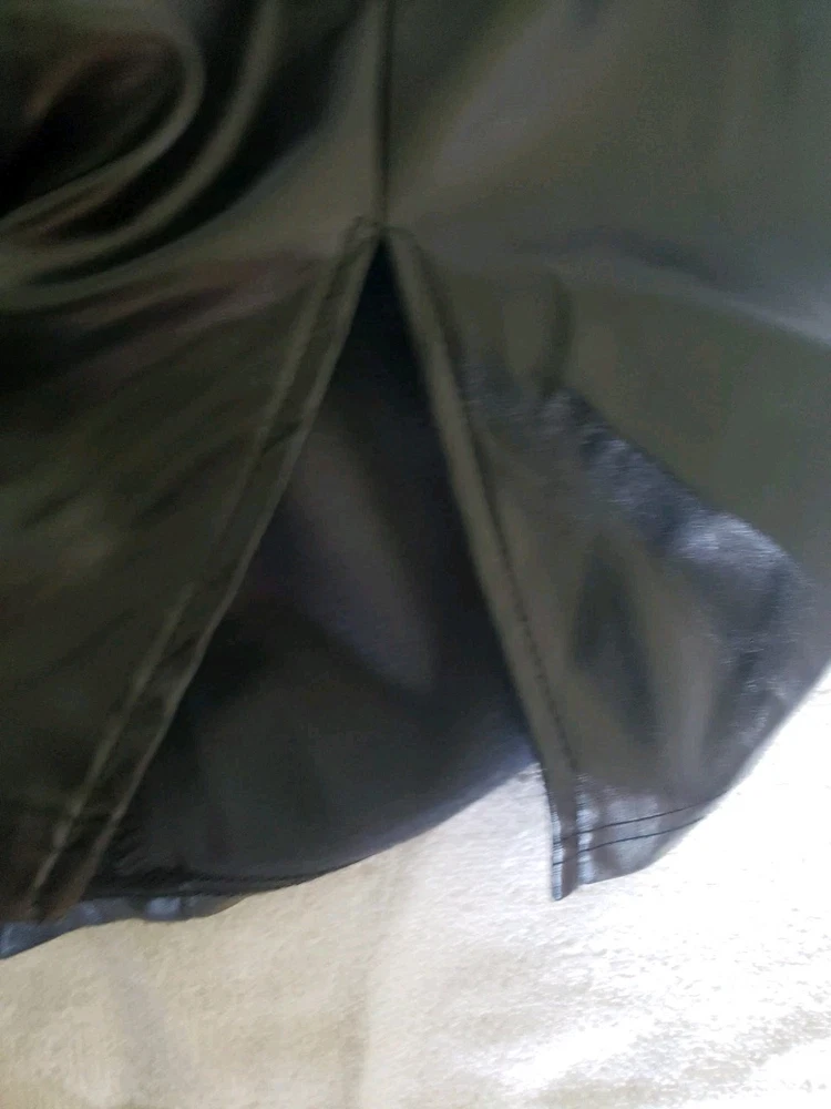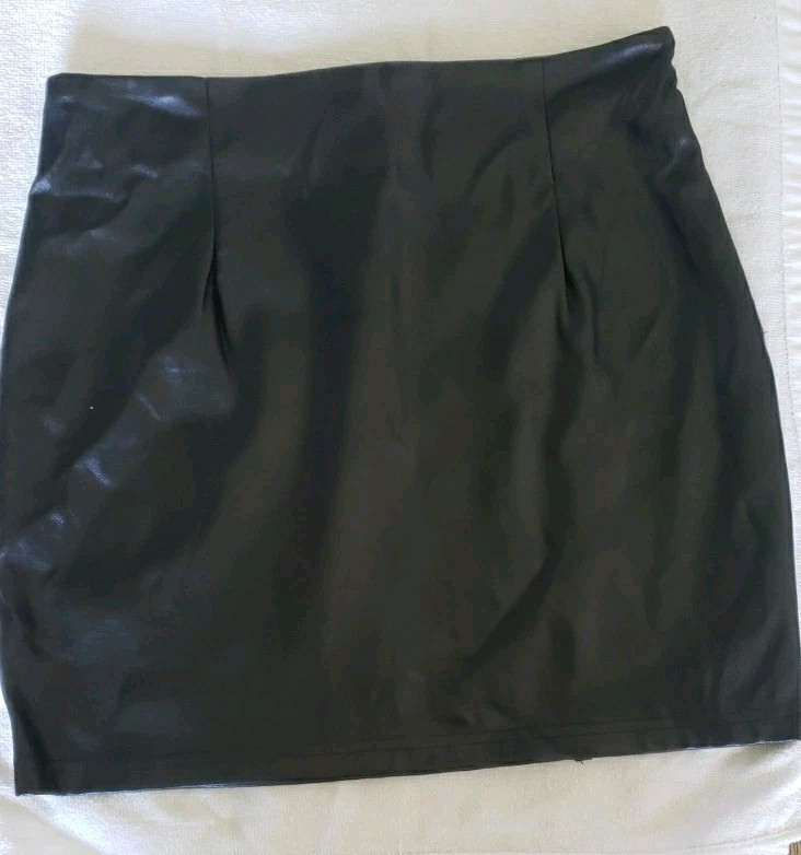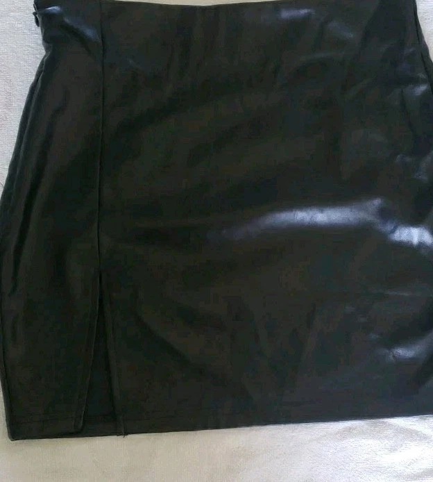 This is a stylish SHEIN black faux leather skirt in size M. It features a side zip closure, a low rise, and a mini length, making it suitable for parties and cocktails. The skirt has a solid pattern, accented with a zipper, and is designed with a lightweight and stretchy fabric for comfort. Perfect for adding a sexy touch to your outfit, this versatile skirt can be worn in various seasons.