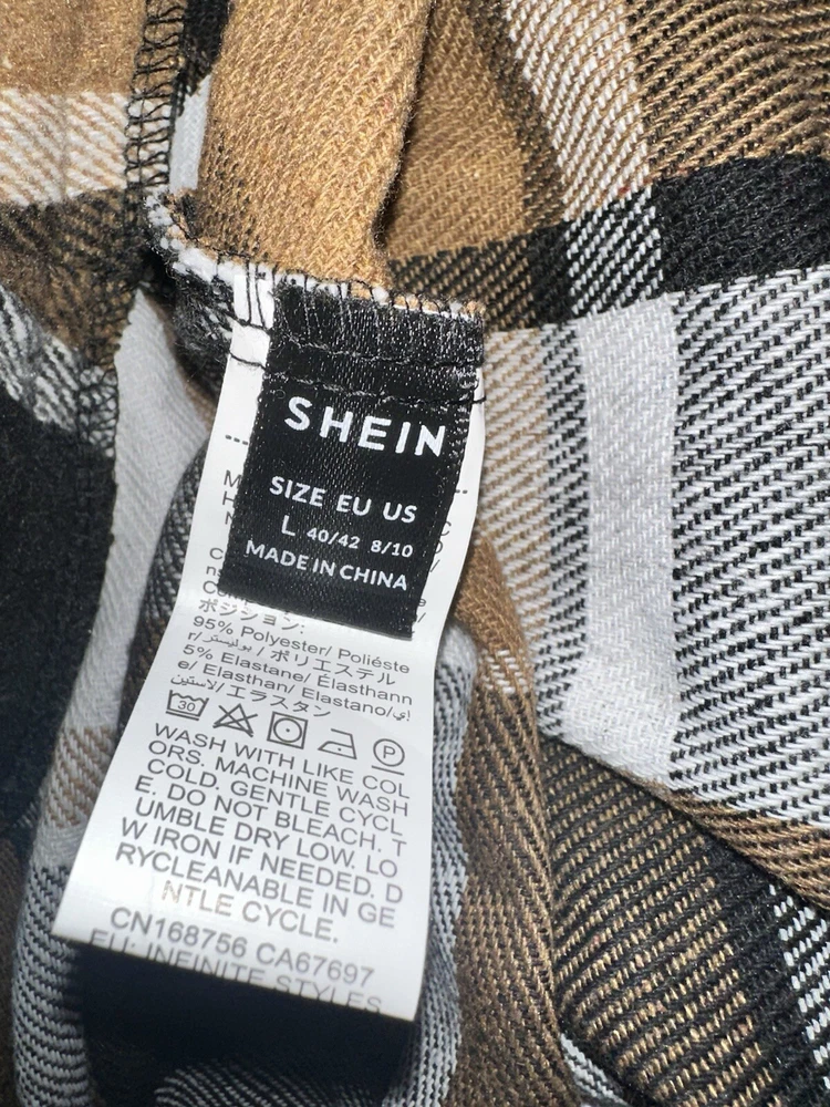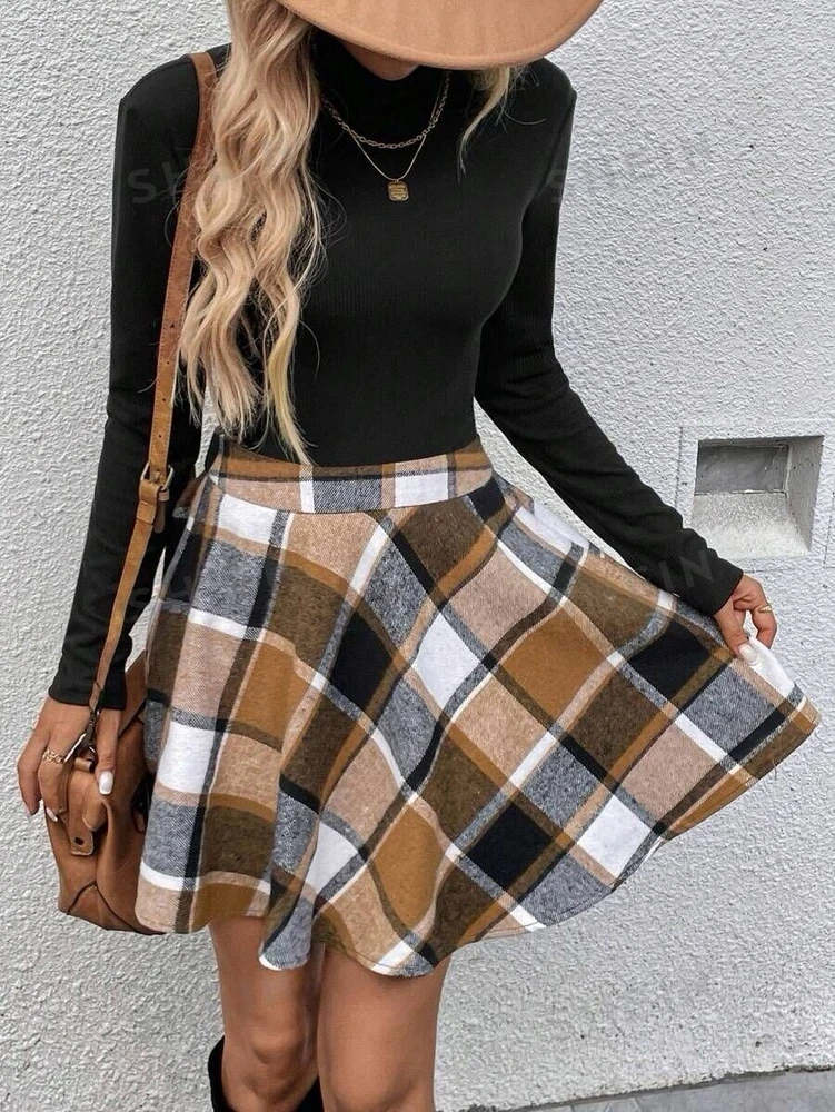 This SHEIN Women’s Plaid Umbrella Skirt is a stylish and trendy clothing item for women. The skirt features a plaid pattern in brown, made from durable polyester material in a size L. It has a zip closure and falls under the category of women's skirts. The skirt is designed to be comfortable and fashionable, perfect for adding a touch of sophistication to any outfit.