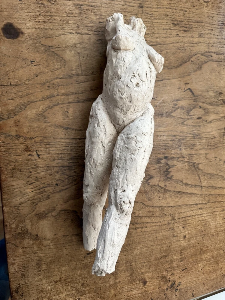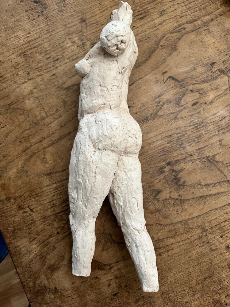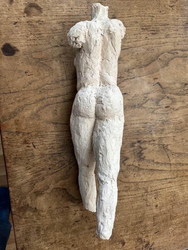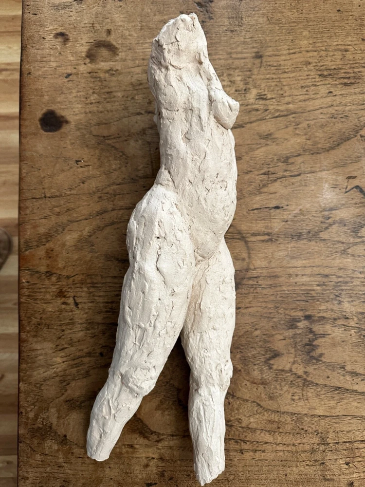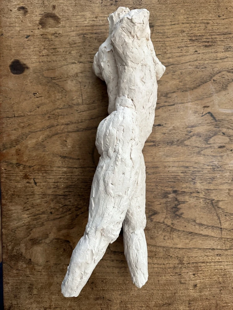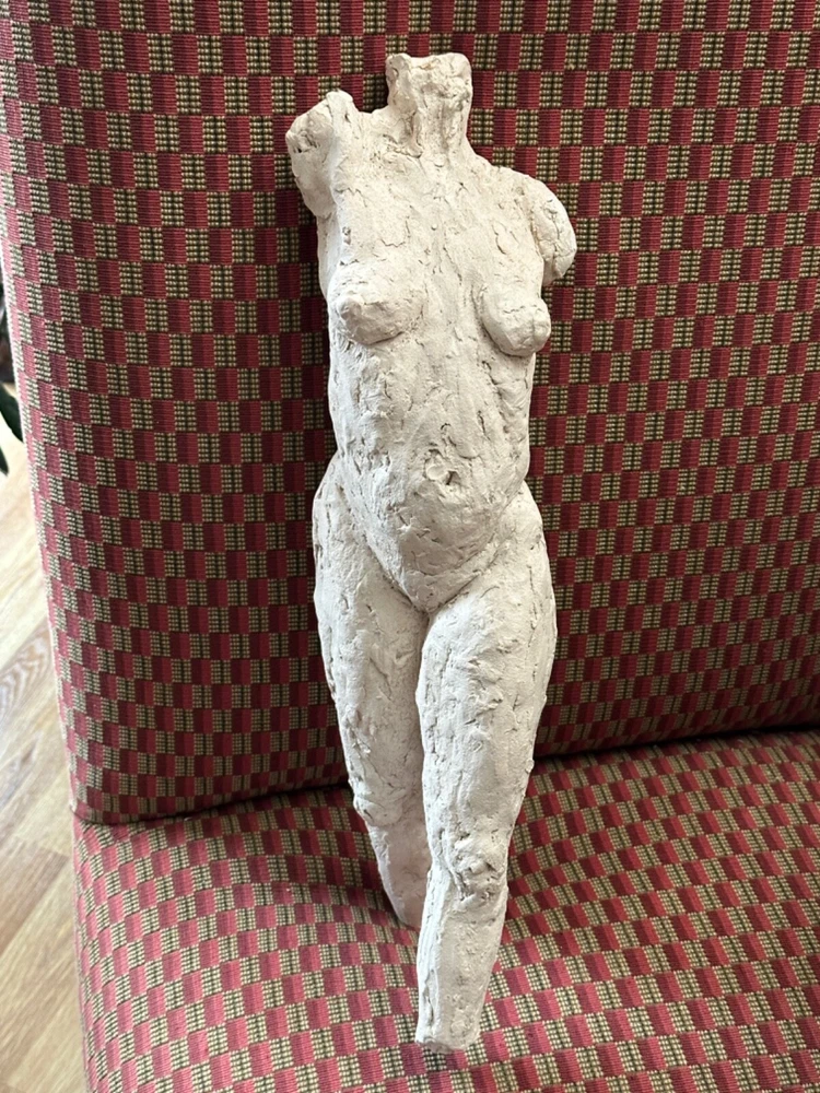 This stunning sculpture by Sherri Cavan (1938-2016) features a large torso of a woman painted with cream-colored clay. The piece stands at 19 inches tall and is an original, single-piece work. The sculpture is an excellent addition to any art collection and is perfect for those who appreciate expressionism and American culture. The item is listed by a dealer or reseller and is an original.The sculpture is medium-sized and has a bust format. The piece is perfect for those who are looking for a unique and beautiful figurine to display in their home or office. THIS SCULPTURE NEEDS TO BE LEANED AGAINST SOMETHING OR A STAND ...