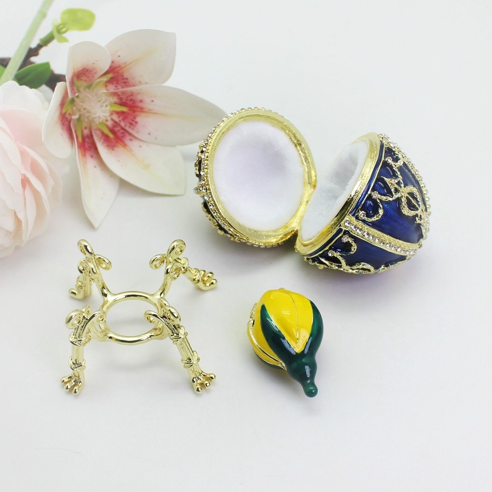 【 Materials】Pewter Enamel Size:5.3x9cm Made in GuangDong 【 Package】Gift Box 100% Brand New Handmade Pewter Enamel Trinket Box Handmade by masters with 20+ Years Experience Can be use for Birthday Gifts,Wedding Favor,Christmas Gifts,Home Decorative This collectible trinket box is meticulously crafted from fine pewter I t is hand enameled and then lavishly inlaid with crystals by skilled artisans. Opens on a hinge to reveal the hand painted interior Magnetic closure to keep the box shut securely , T his jewelry trinket box is made of a pewter-like alloy and finished with a high polished finish Versatile Use: Perfect as both a decorative piece and a functional trinket box I deal for storing small precious items while bringing fortune symbolism