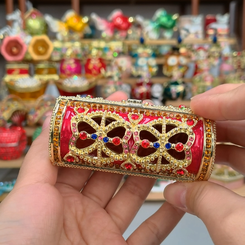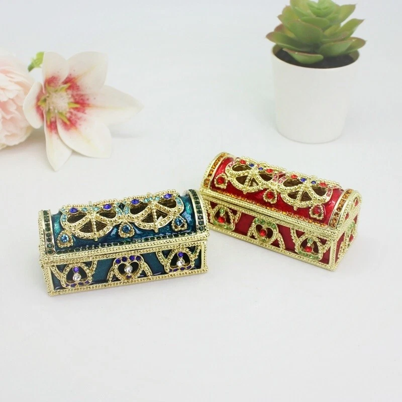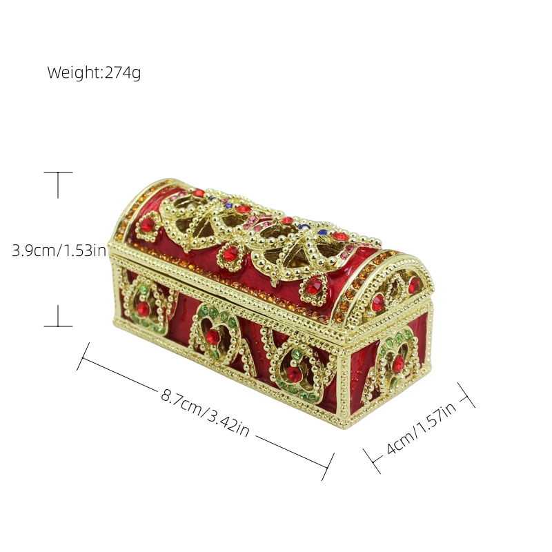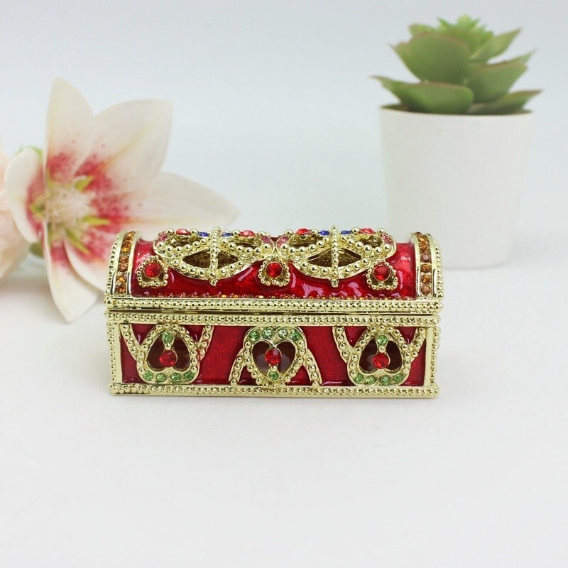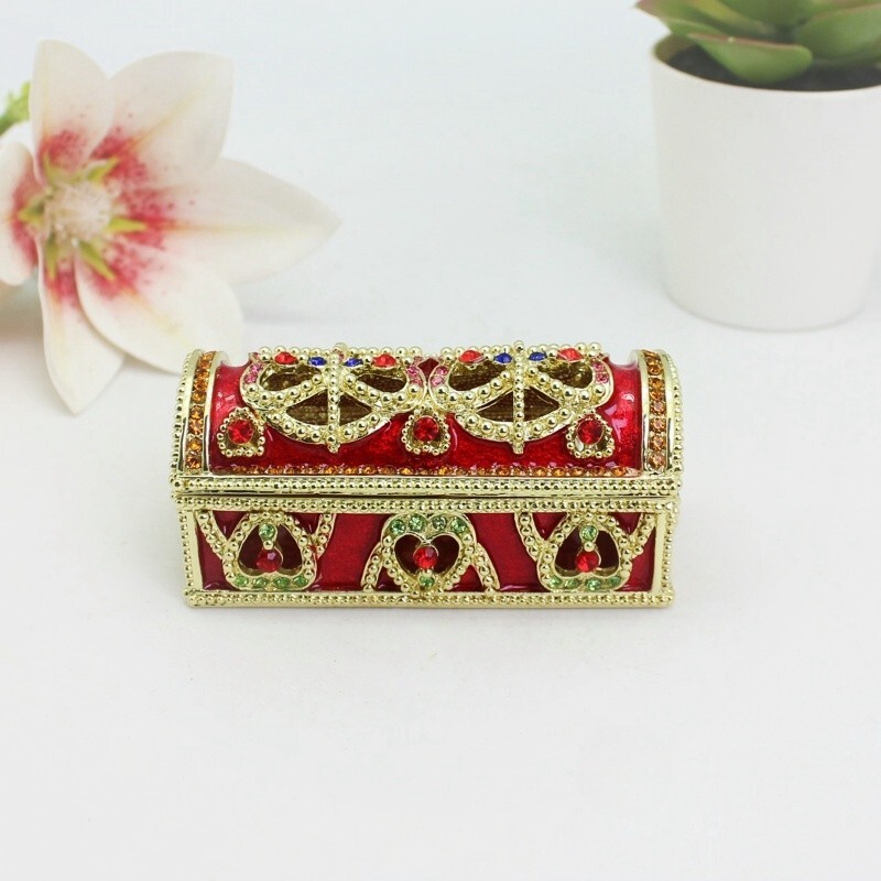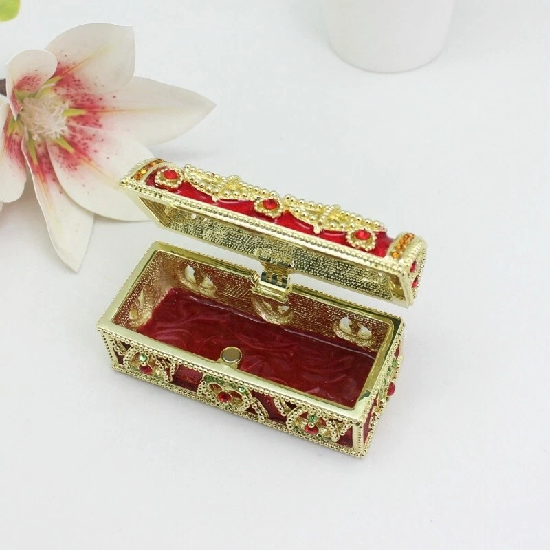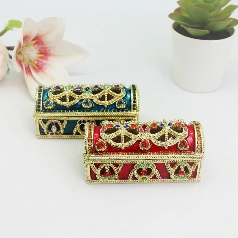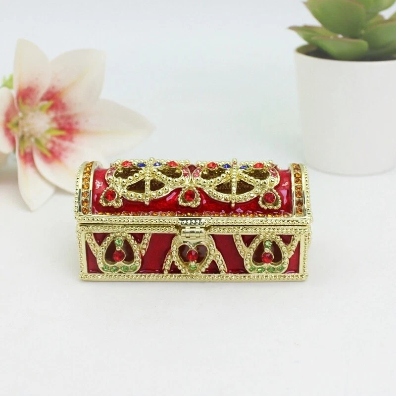 【 Materials】Pewter Enamel Size:8.7x4x3.9cm(LWH) Color:Red,Blue remark the color which one you want Made in GuangDong 【 Package】Gift Box 100% Brand New Handmade Pewter Enamel Trinket Box 20+ Years Experience Masters handmade This collectible trinket box is meticulously crafted from fine pewter I t is hand enameled and then lavishly inlaid with crystals by skilled artisans. Opens on a hinge to reveal the hand painted interior Magnetic closure to keep the box shut securely , T his jewelry trinket box is made of a pewter-like alloy and finished with a high polished finish Versatile Use: Perfect as both a decorative piece and a functional trinket box I deal for storing small precious items while bringing fortune symbolism Can be use for Birthday Gifts,Wedding Favor,Christmas Gifts,Home Decorative