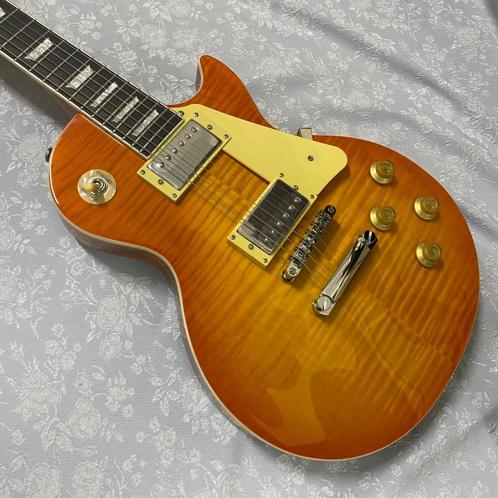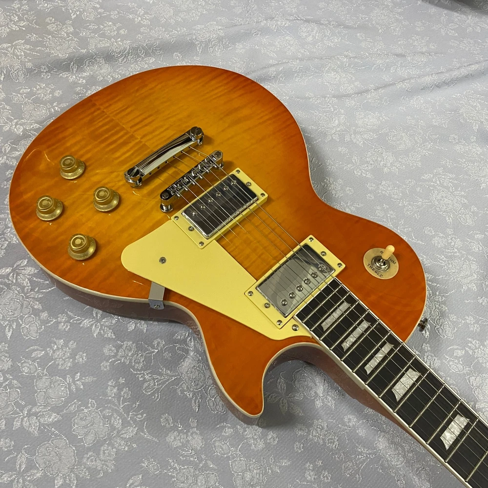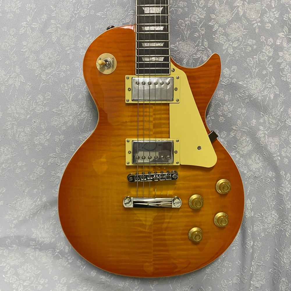The SHIP FROM US LP electric guitar features a solid mahogany body with a multicolor flame maple top and rosewood fingerboard, offering a professional and stylish look. With a 22-fret design and right-handed orientation, this beginner-level electric guitar is perfect for aspiring musicians looking for a high-quality instrument. The LP model, known for its classic design and versatile sound, is sure to impress with its Chinese craftsmanship and attention to detail. Whether you're strumming on stage or practicing at home, this electric guitar is a reliable and attractive choice for any musician.