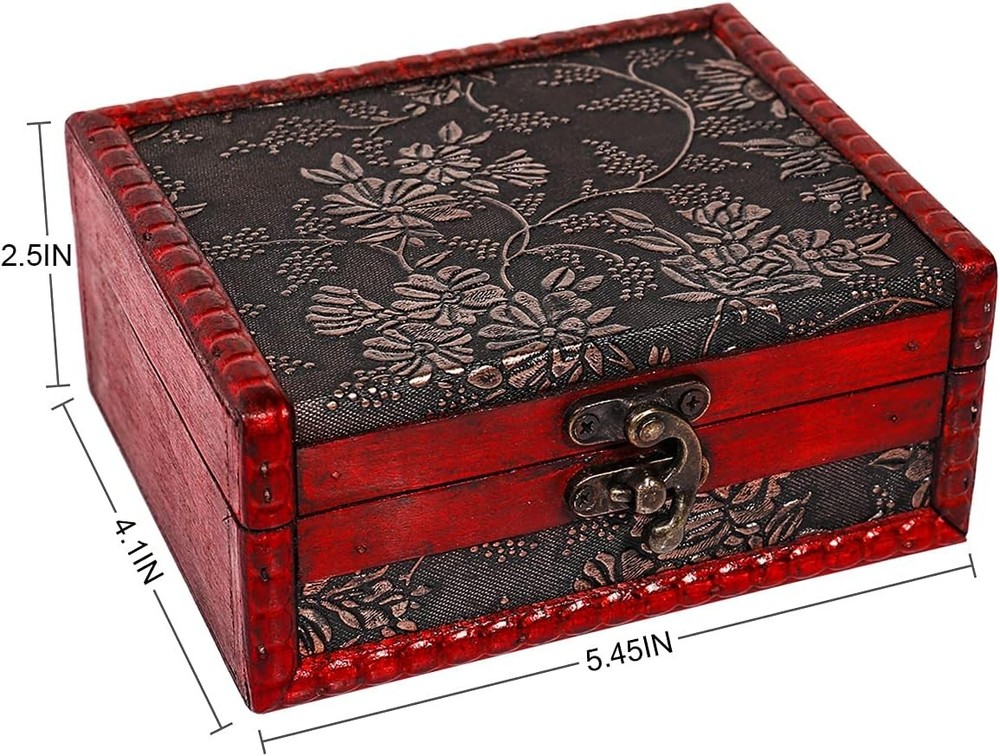 SICOHOME Treasure Box, 5.46" Tarot Cards Box for 5.46", 5.46"-Classic Product Details Brand: SICOHOME Color: 5.46"-Classic Material: Wood Special Feature: wooden material, with a key Eiffel tower key ring Style: Vintage Recommended Uses For Product: Decor Product Dimensions: 5.46"L x 4.5"W x 2.5"H Capacity: 42 Cubic Inches Closure Type: Latch Water Resistance Level: Water Resistant Item Weight: 0.3 Pounds Opening Mechanism: Lift-Off Lid Shape: Rectangular Pattern: Flower Number of Items: 1 Storage Volume: 42 Cubic Inches Number of Compartments: 1 Unit Count: 1 Count Item Package Quantity: 1 Material Feature: Wooden material Manufacturer: SICOHOME Part Number: 14130884 Item Weight: 4.8 ounces Is Discontinued By Manufacturer: No Size: 5.46" Number Of Pieces: 1 Special Features: wooden material, with a key Eiffel tower key ring Batteries Included?: No Batteries Required?: No Brand: SICOHOME Color: 5.46"-Classic Material: Wood Special Feature: wooden material, with a key Eiffel tower key ring Style: Vintage MEASUREMENT: OUTSIDE: 5.46" x 2.5" x 4.5" INSIDE:5.2" x 2.1" x 3.9" Decorative Box,Excellent workmanship box case with wooden material. The hasp made the chest closely. Free with a key Eiffel tower key ring. Great as a gift, part of a Christmas exchange,taro card box for card collection, memory box for the wedding or a personalized jewelry box and the "wrapping" or gift box. PERFECT FOR keep makeups and jewelries, store holiday cards, tarot decks, save keeping, remotes and stuff in the living room, filling with travel momentos, put on dressers.