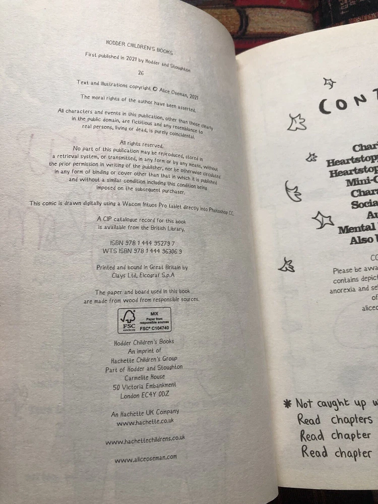 This is a signed copy of "Heartstopper Volume Four" by Alice Oseman, a paperback book published by Hachette Children's Group in 2021. Measuring 232mm in height and 152mm in width, the book has 384 pages and weighs 474g. With the author's signature, this edition is a great addition for fans of the Children & Young Adults and Comics genres, exploring themes related to Gender Studies.