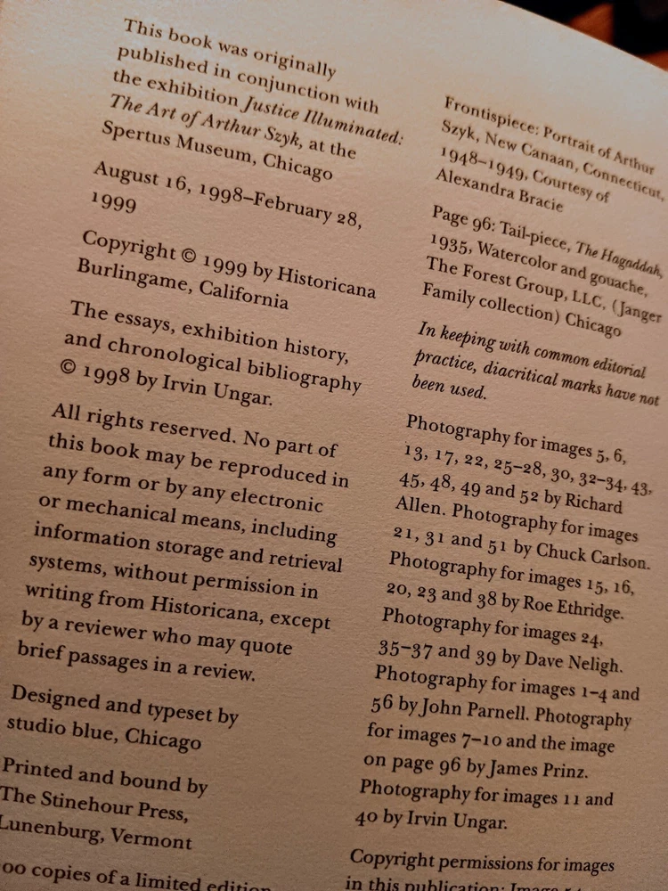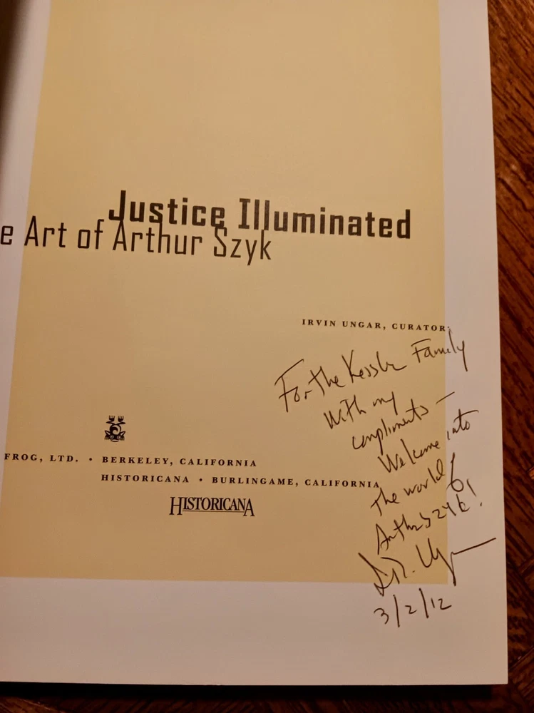 This Justice Illuminated book is a must-have for anyone interested in the art of Arthur Szyk. The book, published in 1999 by North Atlantic Books, showcases the incredible talent of Szyk as an illustrator. Measuring 11 inches in length, 7.7 inches in width, and 0.4 inches in height, this trade paperback edition is perfect for carrying around and reading on the go. With 100 pages filled with stunning illustrations and captivating text, this book is a great addition to any collection. Written by Irvin Ungar, the book explores the themes of archaeology, collections, catalogs, exhibitions, history, and astrology. The book is in English language and weighs 13 Oz. Get your hands on this amazing piece of art today! We have a ULTRA-RARE, SIGNED, Inscribed, and Dated copy by the curator of the original artist exhibition, "Justice Illuminated: The Art of Arthur Szyk" Irvin Ungar in ink on the main interior title page (see photo). Enjoy!!!