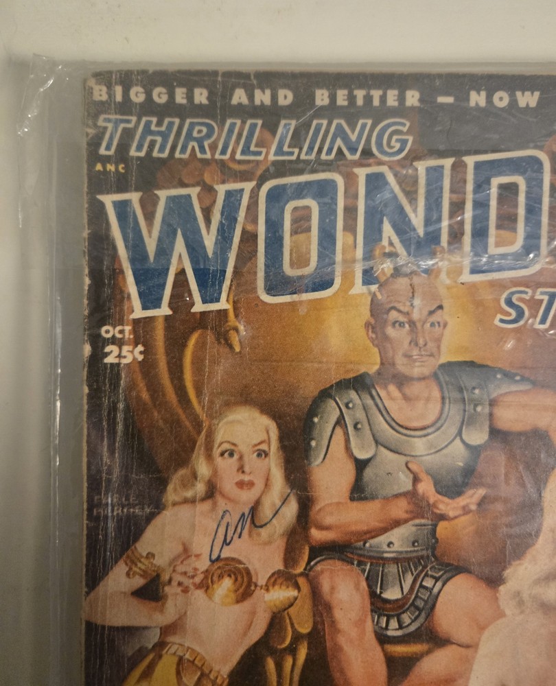 This vintage pulp magazine, Thrilling Wonder Stories Oct 1948 Issue 33 #1, is a rare and collectible item featuring the signature of renowned author Ray Bradbury. Published by Thrilling Publications in the United States, this English-language magazine caters to fans of horror, technology, action & adventure, and science fiction genres. With a monthly publication frequency and limited edition illustrations, this magazine offers a glimpse into the post-apocalyptic and comic book worlds of the 1940s, making it a valuable piece for collectors and enthusiasts alike.