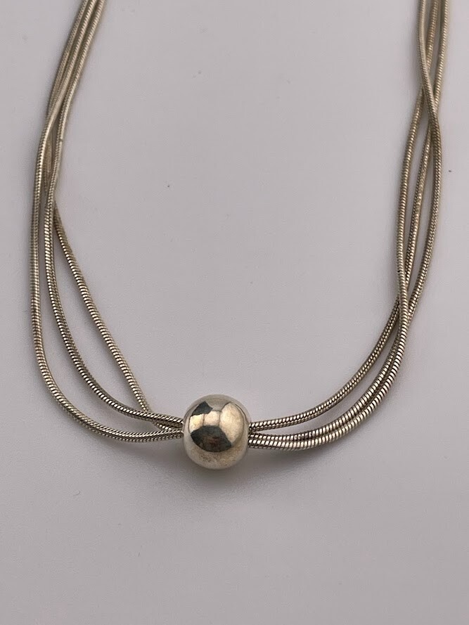 SILPADA ITALY N0914 925 STERLING SILVER 3 STRAND THOREAN NECKLACE 16" 3712 MINIMALIST ****************************** Thank you for your interest in our jewelry. We?d like to introduce ourselves. We are just a retired couple who love matching our customers with great jewelry. We?re not professional jewelers. To have the best shopping experience we like to recommend the following: Please measure your hand, wrist, finger or neck to ensure the best fit. We can use your measurements to help with sizing. Please ask all the questions you want. We know some stuff and, if we don?t, we?ll do the research. We like to learn too. More Stuff: If an item is described as ?gold over 925 sterling silver? this means it is gold vermeil. Vermeil is the process by which a layer of gold (usually 14k or 18k) is bonded to sterling silver. We only clean with gentle soap and warm water to avoid damage. The items we sell may be new or pre-owned and may have normal wear, slight damage, and/or tarnish. We make every effort to ensure the items we sell are as described. This includes testing to confirm metal purity if the item isn?t marked, and testing for gemstone identity. We try to put measurements in the jewelry description and include a photo of each piece with a U.S. quarter (25mm).