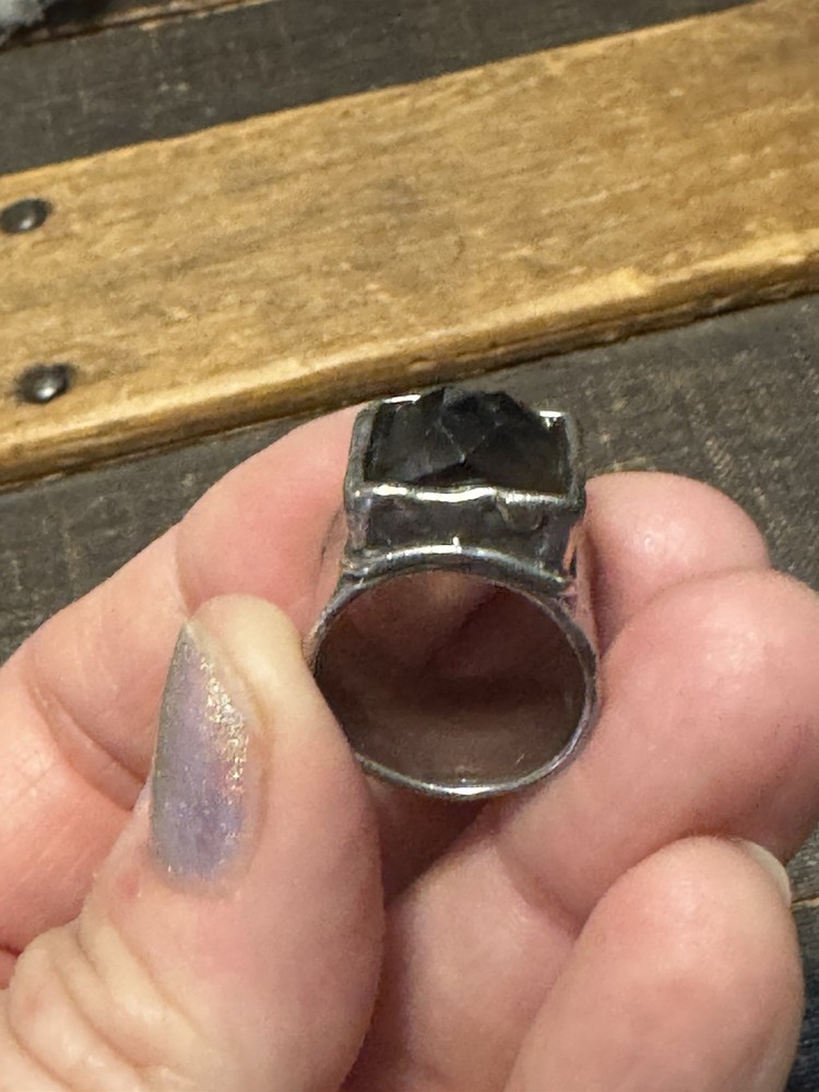 The SILPADA Sterling Silver Wide Band Smoky Quartz Ring is a vintage piece crafted with a hammered design, featuring a round light brown quartz stone as the main focal point. This unique ring is handcrafted with sterling silver and signed by the brand Silpada, adding a touch of authenticity and artistry to the piece. The wide band design adds a stylish and bold element to the ring, making it a beautiful accessory for those who appreciate beauty, art, and love in their jewelry choices.