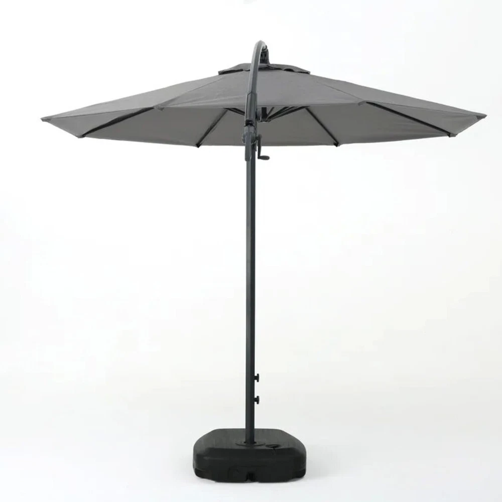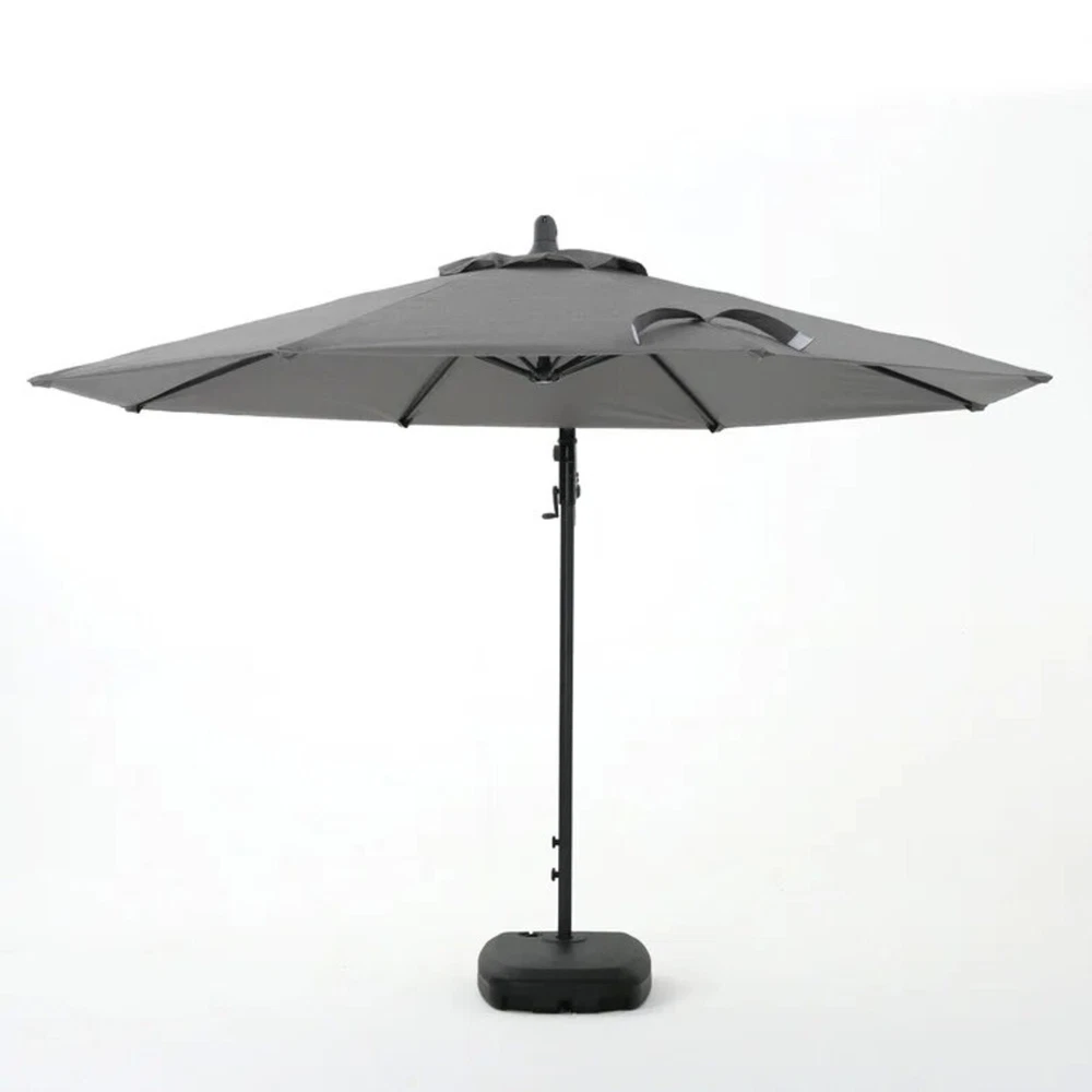 Product Information Main Color: Gray Use Case: Garden & Outdoor Shades Type: Umbrellas Main Material: Aluminium Product Dimensions Item Length (in.): 116.50 Item Width (in.): 116.50 Item Height (in.): 111.00 Weight (lbs.): 22.05 Package Size Sub-item 1 Package Quantity:1 79.00 * 15.75 * 7.00 in 29.96 lbs Sub-item 2 Package Quantity:1 32.50 * 24.25 * 6.50 in 16.98 lbs Product Features Modern style: with clean, precise lines, our canopy umbrella is created with a chic, minimalistic aesthetic and functionality in mind. Minimum counterweight: this umbrella requires a minimum of 100 lbs. Of counterweight to stand correctly. Weather resistant: this umbrella is designed and tested to resist mild weather conditions. We always advise covering, storing, or providing other protection to our furniture in the event of heavy or repeated exposure to the elements, including water and UV rays. Aluminum frame: this umbrella is built with lightweight aluminum, creating a versatile yet durable frame. Base included: this umbrella set comes with a resin-made base, complete with a drainage hole, that you can fill with water to weigh your umbrella down.