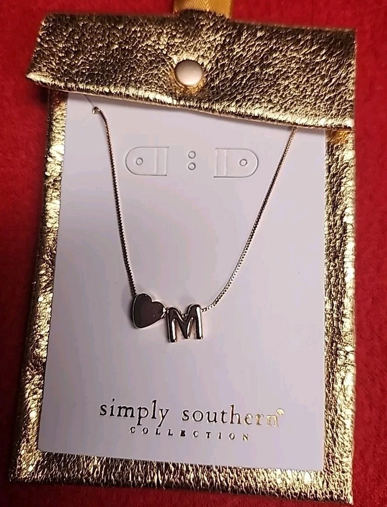 This Simply Southern necklace is the perfect gift for any occasion. The 18-inch necklace features a gold-plated heart & initial charm with a lobster closure. The charm is moveable and the necklace is adjustable, making it a great addition to any jewelry collection. The box chain adds a touch of elegance to the necklace, which is brand new and in excellent condition. The necklace is ideal for anniversaries, birthdays, and Valentine's Day.