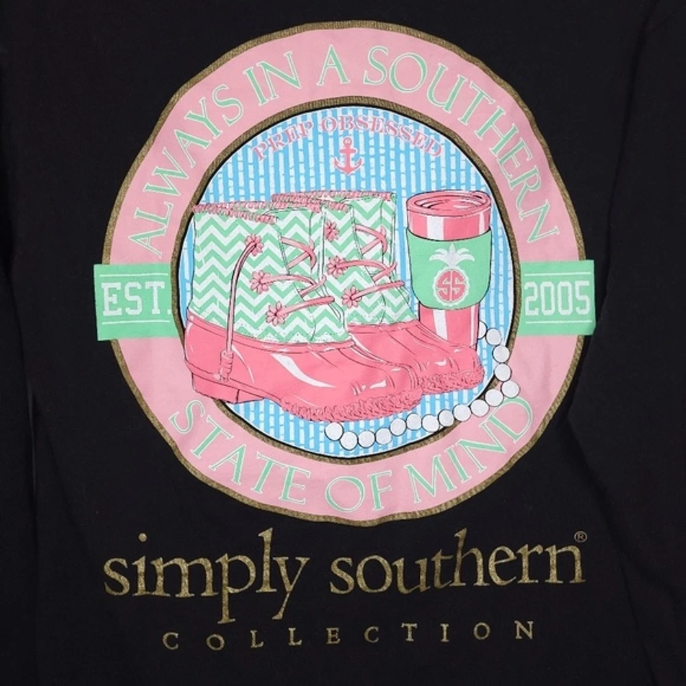 SIMPLY SOUTHERN "Southern State Of Mind" Women's Black Long Sleeve Tee SMALL