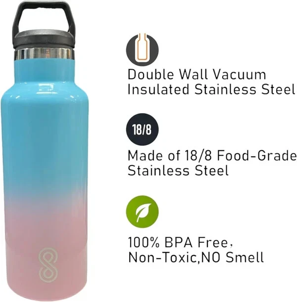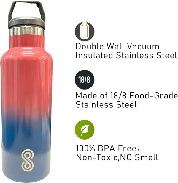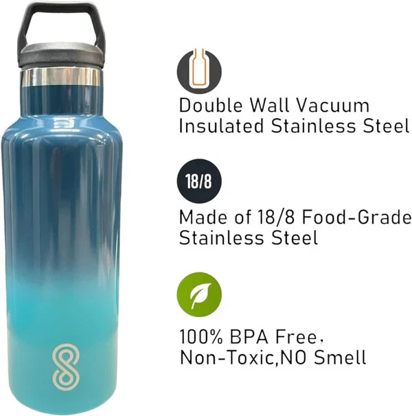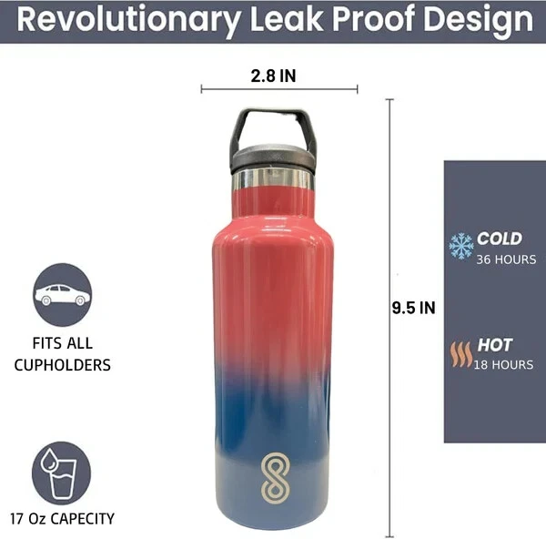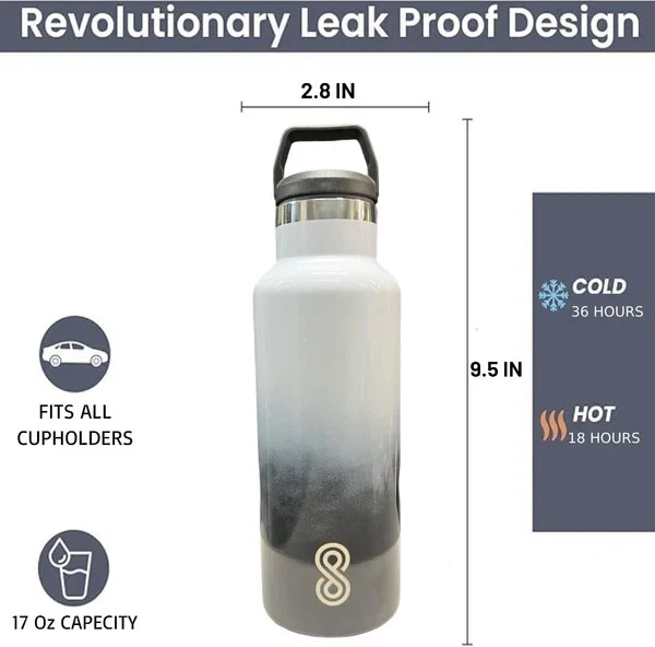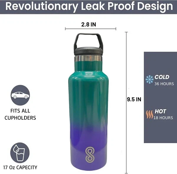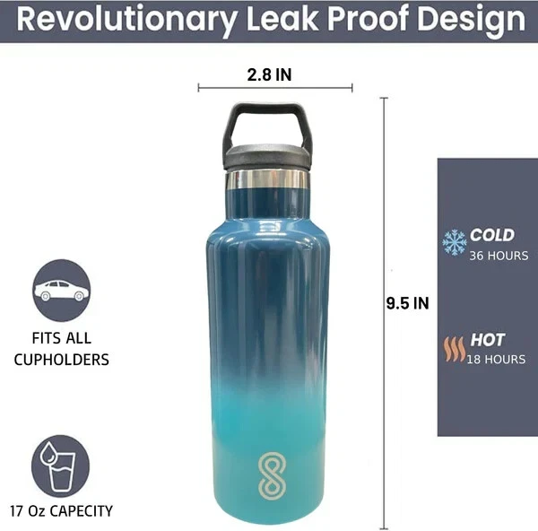 Product Description: Stay refreshed with the SINT 17 Oz Leak-Proof Stainless Steel Water Bottle, designed to keep your drinks at the perfect temperature no matter where you go. Crafted from durable 18/8 stainless steel, this water bottle features double-wall vacuum insulation, ensuring that your beverages stay cold for up to 36 hours or hot for 18 hours. Its sleek Ocean Wave color adds a touch of elegance to your hydration routine, making it a stylish yet practical accessory for both men and women. Whether you're heading to the gym, the office, or embarking on an outdoor adventure, this bottle is perfect for all your hydration needs. Plus, it's dishwasher safe for easy cleaning and convenience. Features: Double-Wall Insulation: Keeps beverages cold for up to 36 hours and hot for 18 hours, with a sweat-free design for hassle-free carrying. Durable & Leak-Proof: Made of high-quality 18/8 stainless steel, this water bottle is tough and leak-resistant, making it perfect for any environment. BPA-Free: Ensures safe, clean hydration every time with a BPA-free, non-toxic design. No metallic aftertaste. Travel-Friendly: Compact and lightweight, this bottle fits easily in bags and backpacks, ideal for on-the-go lifestyles. Dishwasher Safe: Hassle-free cleaning with a bottle that’s fully dishwasher safe for added convenience. Stylish Design: The beautiful Ocean Wave color offers a vibrant look, perfect for personal use or as a gift for the active individuals in your life. Sustainable: A great eco-friendly alternative to single-use plastic bottles, supporting a more sustainable lifestyle. Perfect for Men & Women: This versatile design is ideal for anyone who needs a reliable and stylish hydration companion. Stay hydrated in style with the SINT 17 Oz Leak-Proof Water Bottle, your perfect everyday companion!