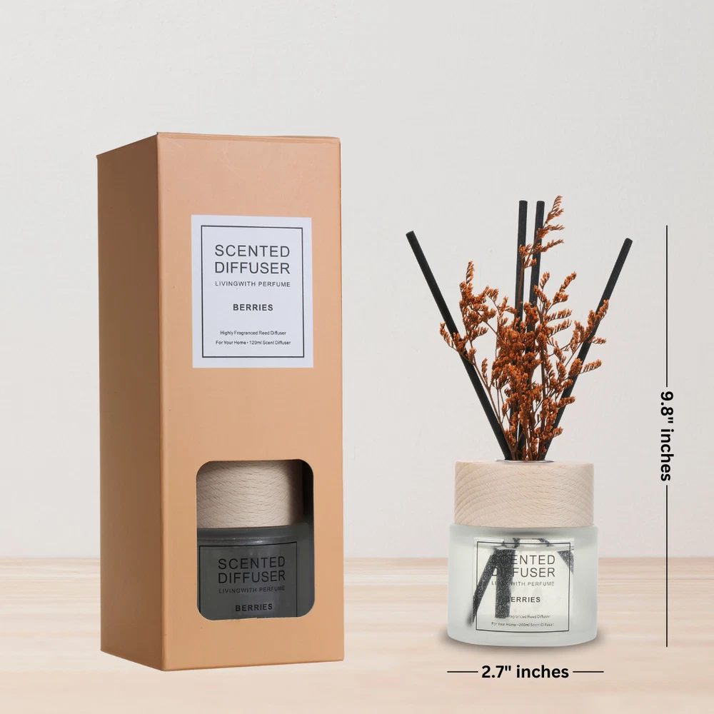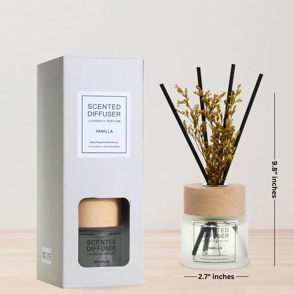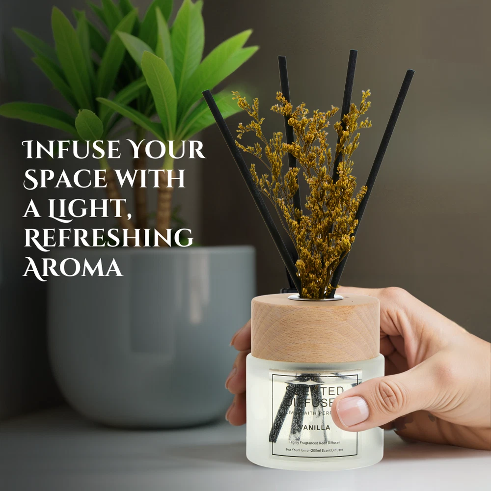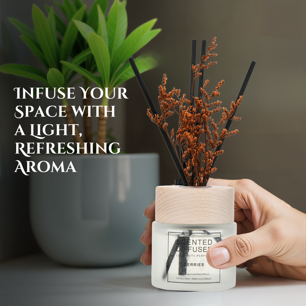 πΏ SINT Home Fragrance Reed Diffuser β 200 ml with 4 Reed Sticks Available in Lavender, Vanilla & Berries β Elegant Aroma for Home, Office & Gifting Key Features & Benefits π Soothing Aromas: Choose from calming Lavender, cozy Vanilla, or refreshing Berries to elevate your environment. π°οΈ Long-Lasting Fragrance: 200 ml diffuser (6.76 fl oz) provides continuous aroma for weeks with no flames or electricity required. π Customizable Scent Control: Includes 4 reed sticks β adjust intensity based on your space and preferences. πͺ Elegant Decorative Bottle: Sleek glass bottle with wooden accents enhances your home dΓ©cor. π Perfect Gift Idea: A stylish and practical gift for housewarmings, birthdays, holidays, weddings, or spa-lovers. Perfect for Every Space Create a spa-like experience in your: βοΈ Living Room βοΈ Bedroom βοΈ Bathroom βοΈ Office Desk βοΈ Yoga or Meditation Space βοΈ Entryways & Hallways Available Fragrance Variations Lavender β Calming & Relaxing Vanilla β Warm & Soothing Berries β Fruity & Refreshing Visual Experience Product Specifications Brand: SINT Material: Glass, Wood Capacity: 200 ml / 6.76 fl oz Scent Variants: Lavender, Vanilla, Berries Weight: 0.8 Pounds Dimensions: 2.7"L x 2.5"W x 9.8"H Special Feature: Long-Lasting Aroma Includes: 1 Glass Bottle + 4 Reed Sticks Why Choose SINT Fragrance Diffusers? SINT is committed to creating elegant and functional lifestyle products. Our reed diffusers combine aesthetics and aromatherapy to refresh your environment while enhancing your dΓ©cor. Enjoy a natural scent experience thatβs safe, flameless, and mess-free. Transform Your Space, Naturally Choose your favorite scent and bring home long-lasting freshness with SINT Reed Diffusers today.