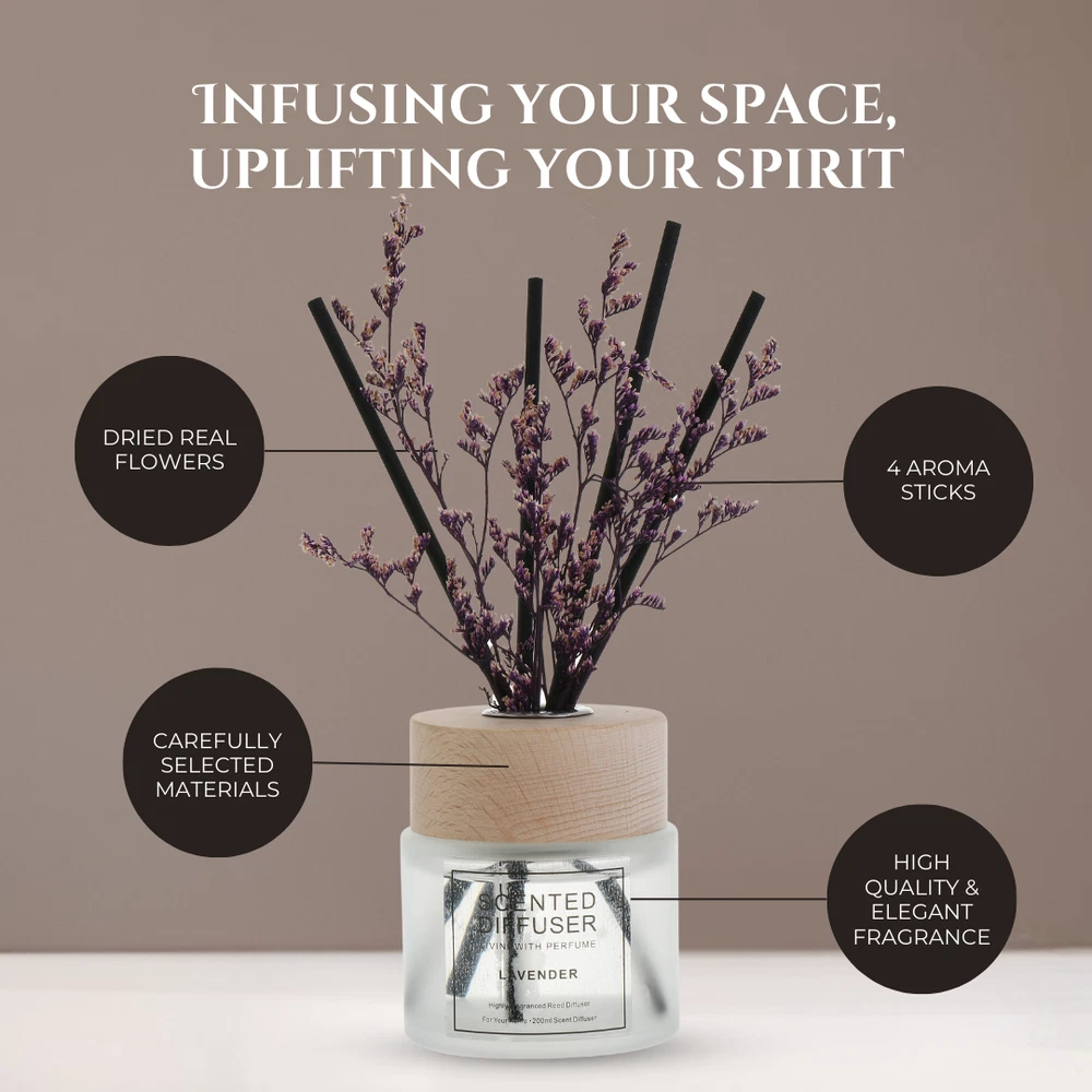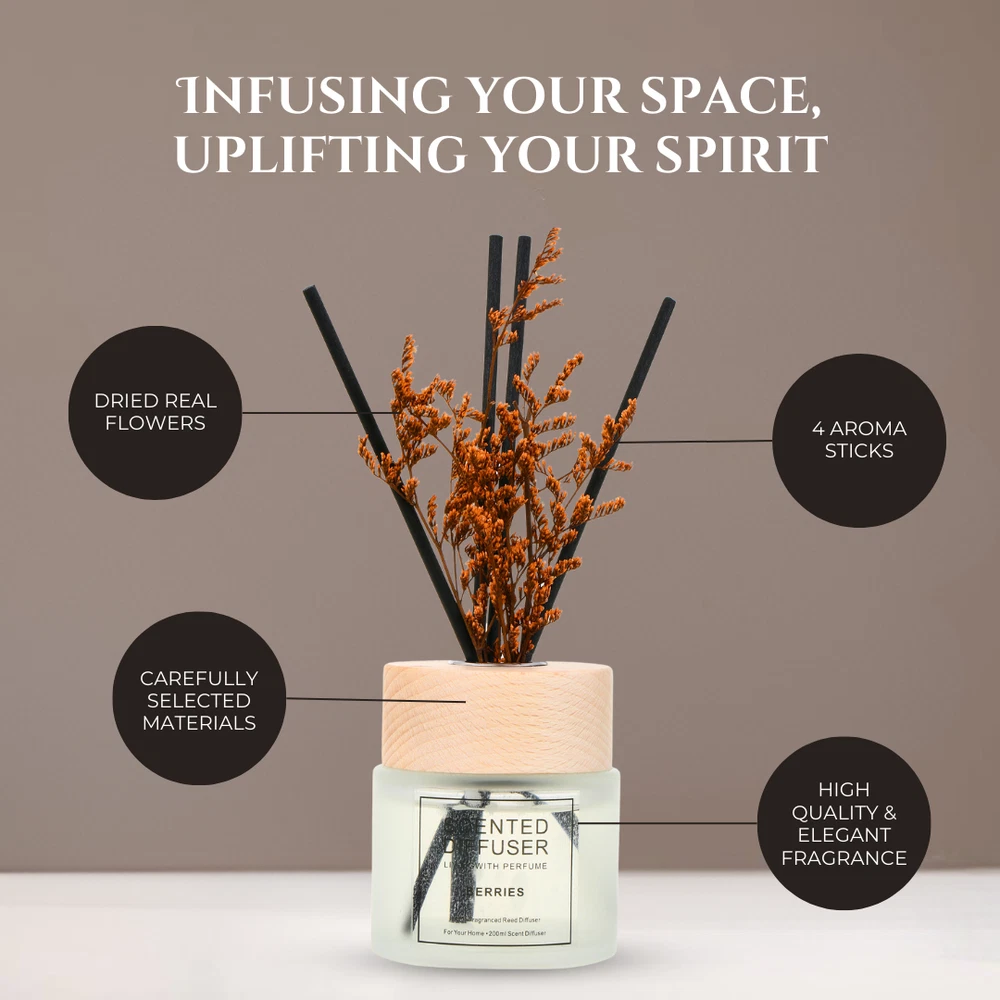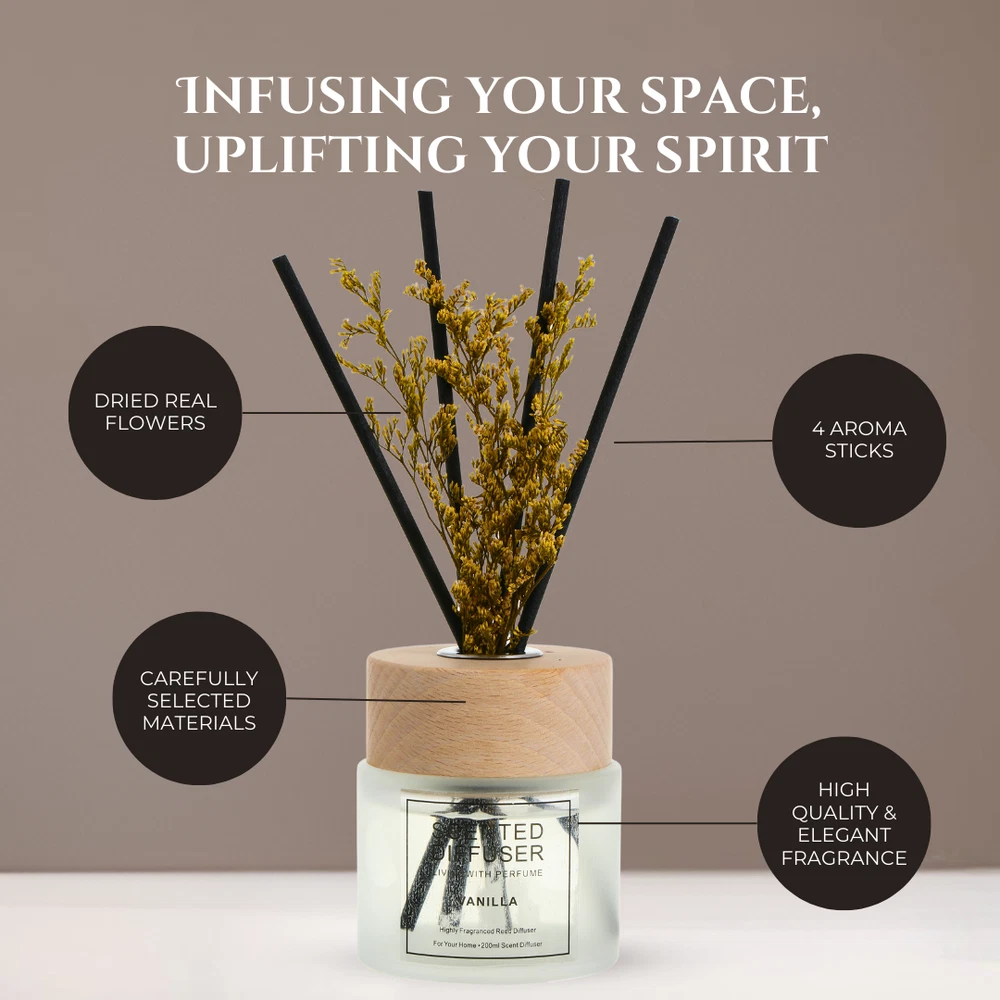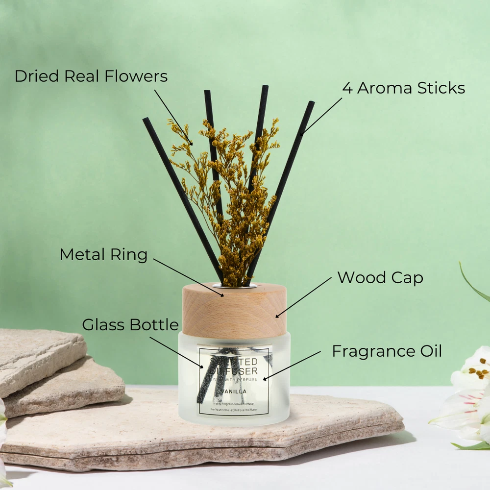 πΏ SINT Home Fragrance Reed Diffuser β 200 ml with 4 Reed Sticks Available in Lavender, Vanilla & Berries β Elegant Aroma for Home, Office & Gifting Key Features & Benefits π Soothing Aromas: Choose from calming Lavender, cozy Vanilla, or refreshing Berries to elevate your environment. π°οΈ Long-Lasting Fragrance: 200 ml diffuser (6.76 fl oz) provides continuous aroma for weeks with no flames or electricity required. π Customizable Scent Control: Includes 4 reed sticks β adjust intensity based on your space and preferences. πͺ Elegant Decorative Bottle: Sleek glass bottle with wooden accents enhances your home dΓ©cor. π Perfect Gift Idea: A stylish and practical gift for housewarmings, birthdays, holidays, weddings, or spa-lovers. Perfect for Every Space Create a spa-like experience in your: βοΈ Living Room βοΈ Bedroom βοΈ Bathroom βοΈ Office Desk βοΈ Yoga or Meditation Space βοΈ Entryways & Hallways Available Fragrance Variations Lavender β Calming & Relaxing Vanilla β Warm & Soothing Berries β Fruity & Refreshing Visual Experience Product Specifications Brand: SINT Material: Glass, Wood Capacity: 200 ml / 6.76 fl oz Scent Variants: Lavender, Vanilla, Berries Weight: 0.8 Pounds Dimensions: 2.7"L x 2.5"W x 9.8"H Special Feature: Long-Lasting Aroma Includes: 1 Glass Bottle + 4 Reed Sticks Why Choose SINT Fragrance Diffusers? SINT is committed to creating elegant and functional lifestyle products. Our reed diffusers combine aesthetics and aromatherapy to refresh your environment while enhancing your dΓ©cor. Enjoy a natural scent experience thatβs safe, flameless, and mess-free. Transform Your Space, Naturally Choose your favorite scent and bring home long-lasting freshness with SINT Reed Diffusers today.