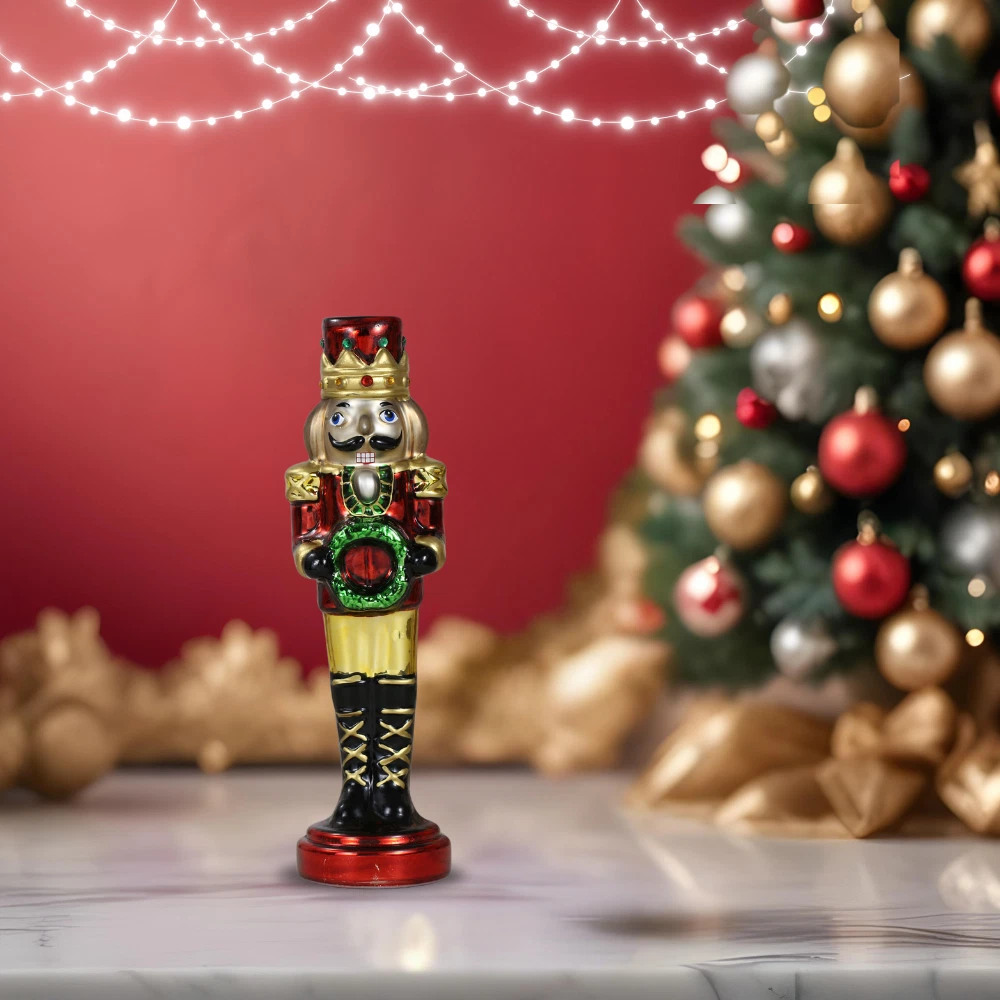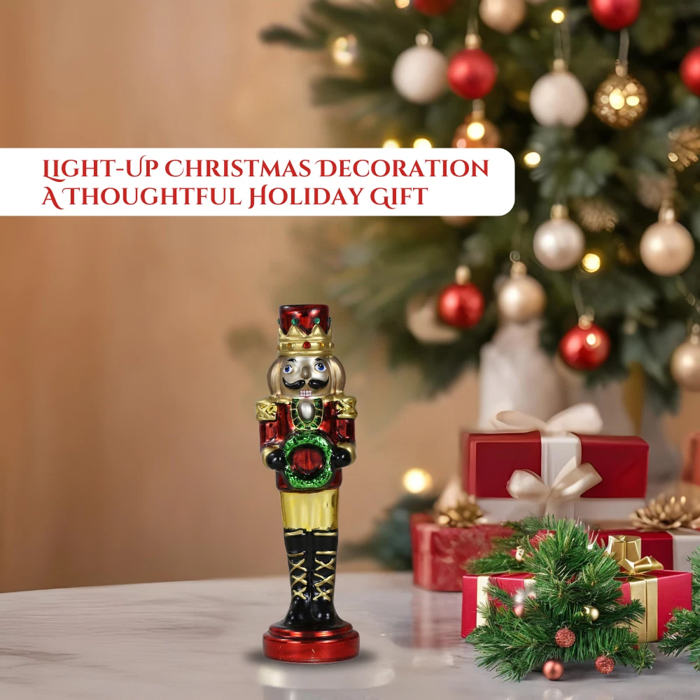 SINT Red Glass Lightup Nutcracker Figurine for Christmas