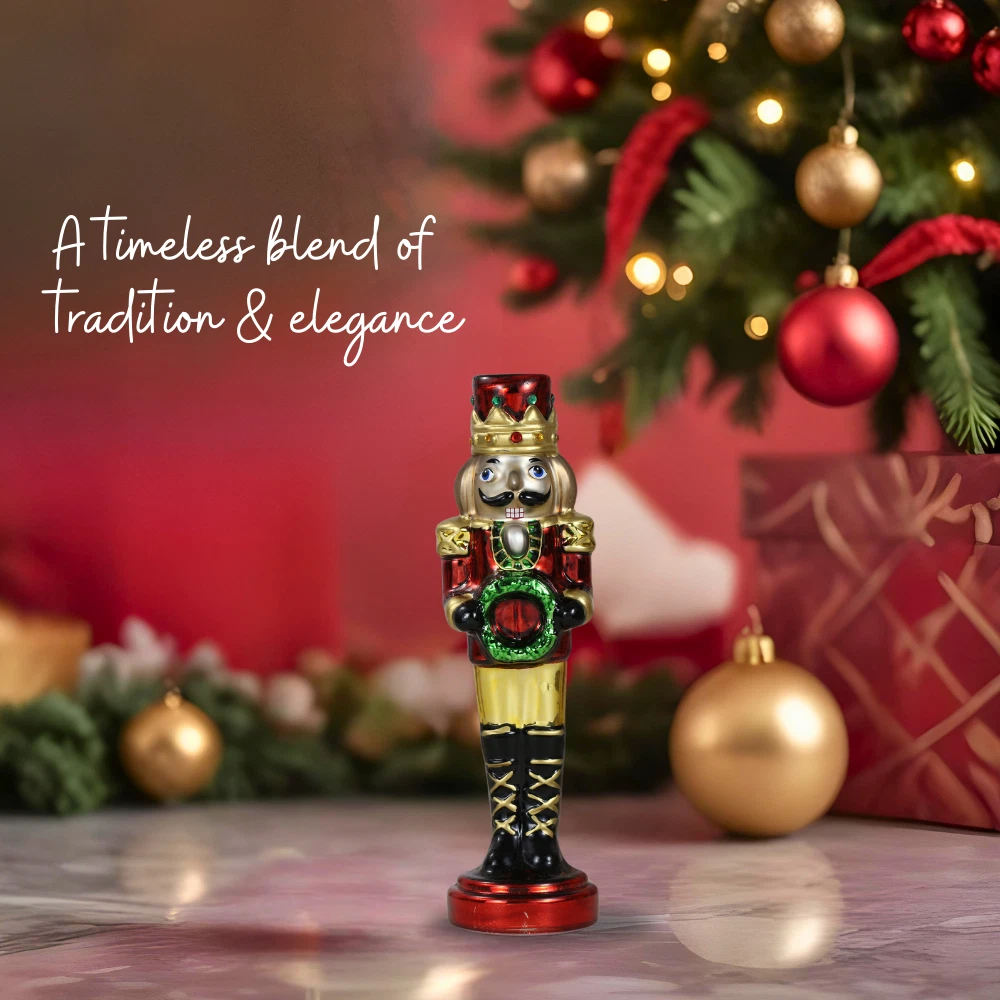 Product: Decoration Brand: SINT Character Family: Nutcrackers Features: Handmade Occasion: Christmas Material: Glass Number of Items: 1 Color: Red Theme: Holiday Type: Snowman Size: 10.6 Character: Nutcracker