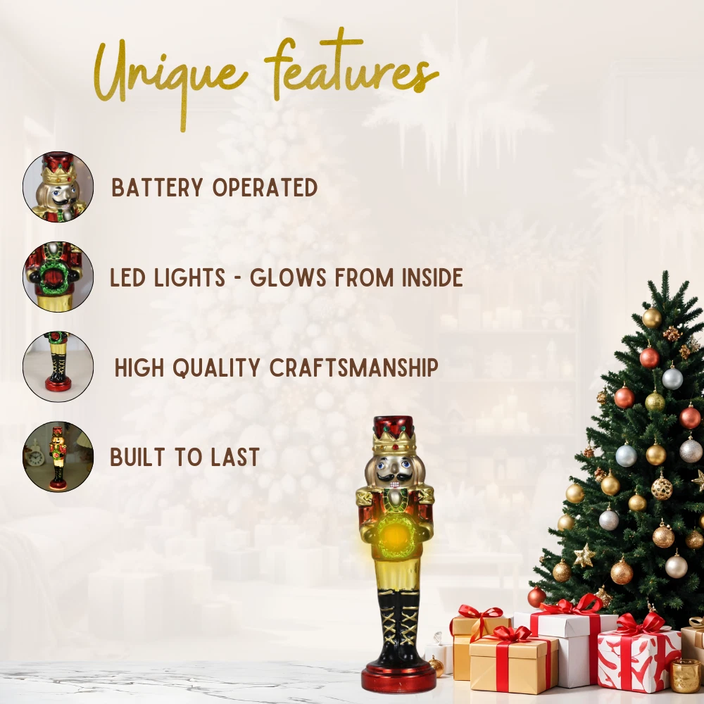 SINT Red Glass Lightup Nutcracker Figurine for Christmas Please Read Description Below: Add a touch of festive charm to your home with the SINT Red Color Glass Lightup Nutcracker Figurine Ornament. This beautifully crafted tabletop decoration features a vibrant red glass nutcracker, complete with intricate details and a warm LED light that illuminates the festive spirit. Perfect for shelves, tables, or any holiday display, it brings a classic, whimsical touch to your Christmas décor. Ideal for creating a cozy, holiday atmosphere in your home this season. Before Purchase: Please ask any/all questions related to this item to make sure you're purchasing the correct item and verify it's compatibility to avoid any frustration. After Purchase: If you're not satisfied with your purchase or have any questions/concerns, please contact us via eBay Messaging and give us an opportunity to resolve any issues. Note: We respond to messages in the order they're received, please allow some time for us to get back to you, sending multiple messages will only cause delays in getting back to you. Once again, please give us an opportunity to resolve any issues/concerns with your purchase before Opening a Return or Opening a Case on eBay. We want to make sure you're happy & satisfied with your purchase. Contact us Monday through Friday from 09:00 am to 5:00 pm Central Standard Time Closed on Weekends & Public Holidays Shipping Standard Shipping Disclaimer If you're not satisfied with your purchase or have any questions/concerns, please contact us via eBay Messaging and give us an opportunity to resolve any issues.