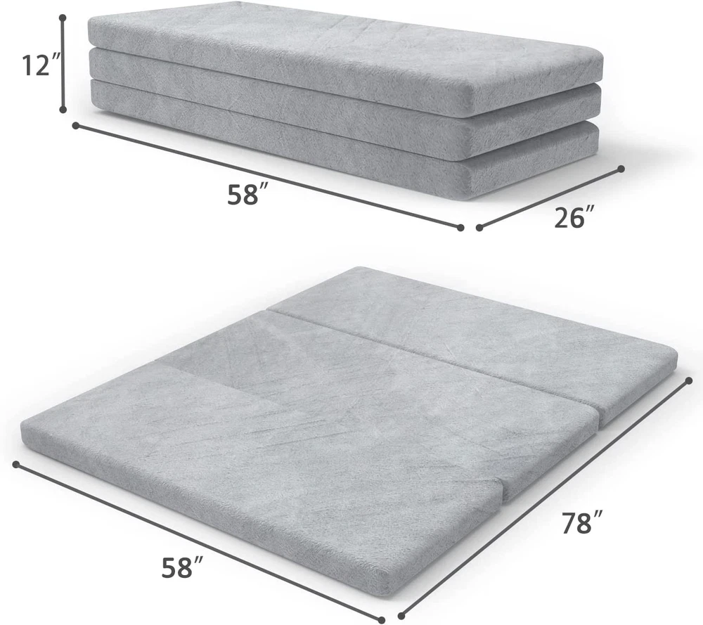 Multifunctional Design: Our convertible folding mattress can be changed freely among lounge chair and bed to satisfy your different needs. This versatile mattress will be a perfect solution for small house with limited space which is great for Video gaming, reading, camping and sleeping. Well Selected Materials: Featuring 4 inch high density and thick sponge, this foldable mattress has good elasticity and can perfectly support your body. Portable & Foldable Desig: This sponge mattress can be folded into a compact size when not in use for space-saving. Simply slip the included carrying case over the portable, tri-fold mattress and zip it up to keep it neat and secure while you travel. It is great for your guests, gaming with kids, travelling, camping, and YOGA in any room, mobile home, tent or car. Easy to Clean and Maintain: Coming with the smooth zipper which is covered with a wrapping cloth, the cover of our foldable sponge mattress can be quickly removed for easy washing. Plus, both cover and sponge materials are well selected for long time use and there is no need for tedious maintenance at ordinary times. BUY WITH CONFIDENCE: SINWEEK fold mattress is consistent with the high standard of quality. We provide an honest 30-days money-back return policy. Please allow up to 72 hours for the mattress to fully expand. If you have any questions at all, do not hesitate to contact us.