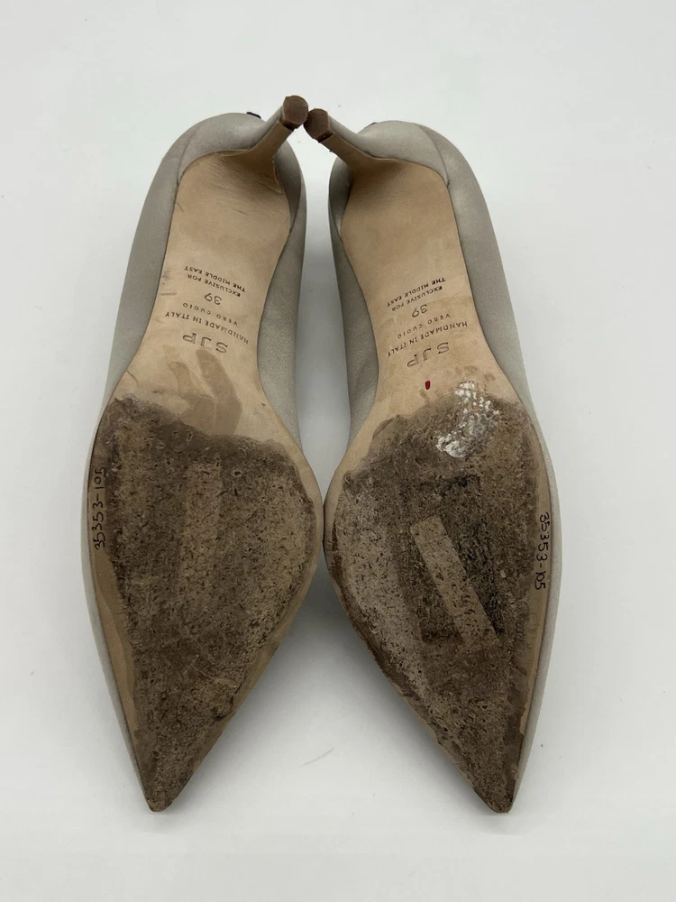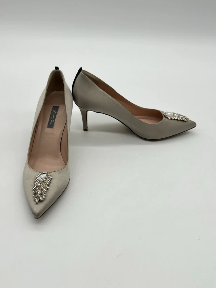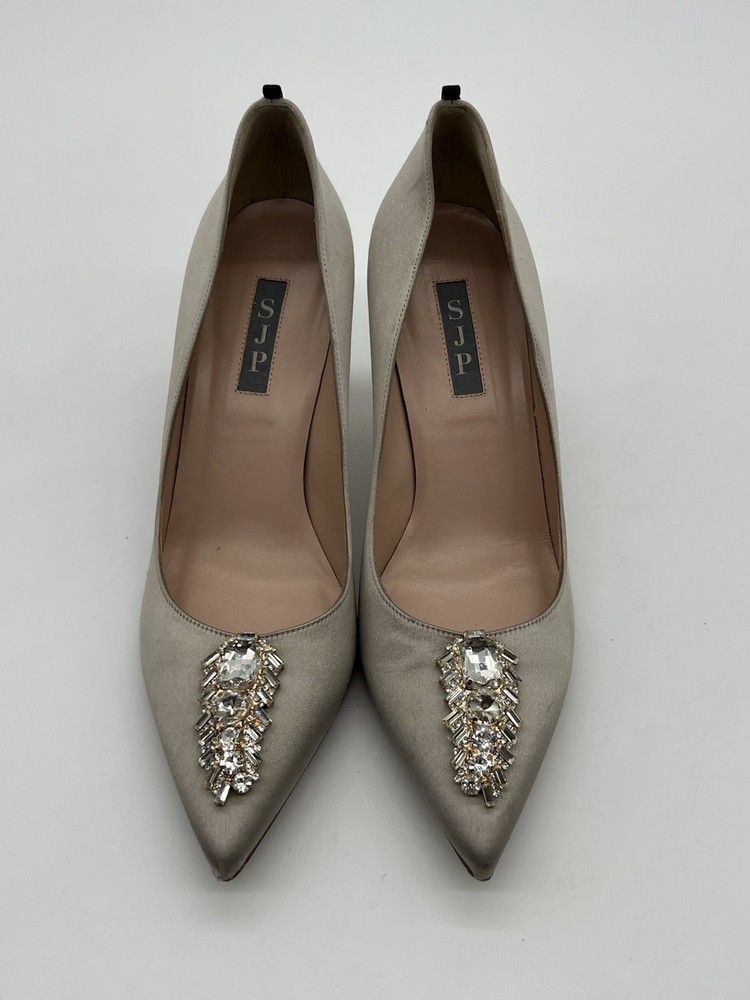 SJP by Sarah Jessica Parker Women’s 39 US 8.5 Gray Pointed Toe Pumps Heels Shoes. Shoes are in used condition and have signs of wear but shoes are still in great condition. Upper material is in good condition and clean , inside is clean and the soles are in great condition. Nice comfortable shoes for casual wear. Condition is pre-owned. Shipped with usps priority mail. Sold as pictures. Thank you! Feel free to message me for any questions. Thank you