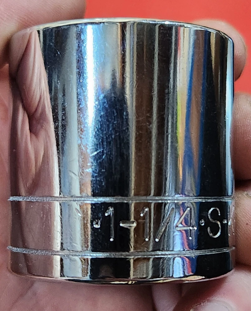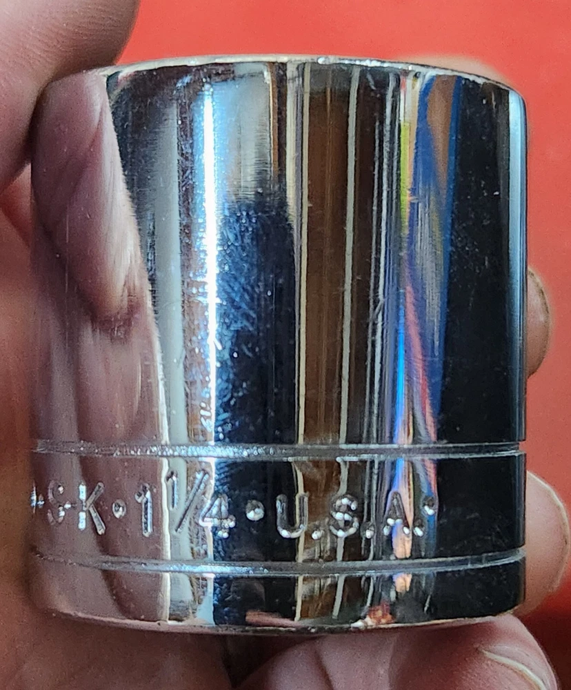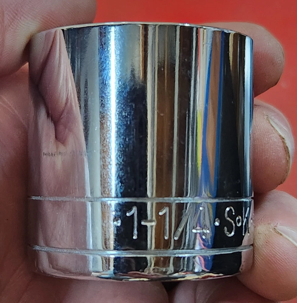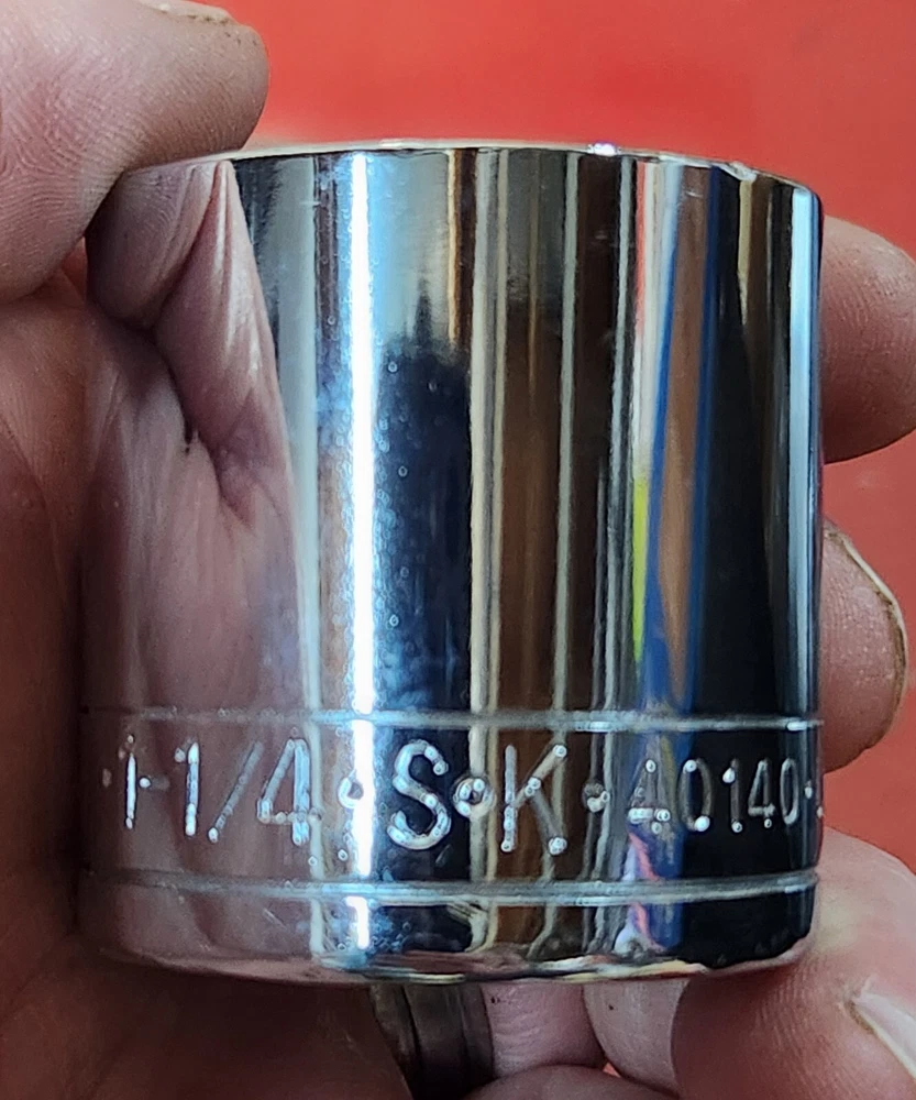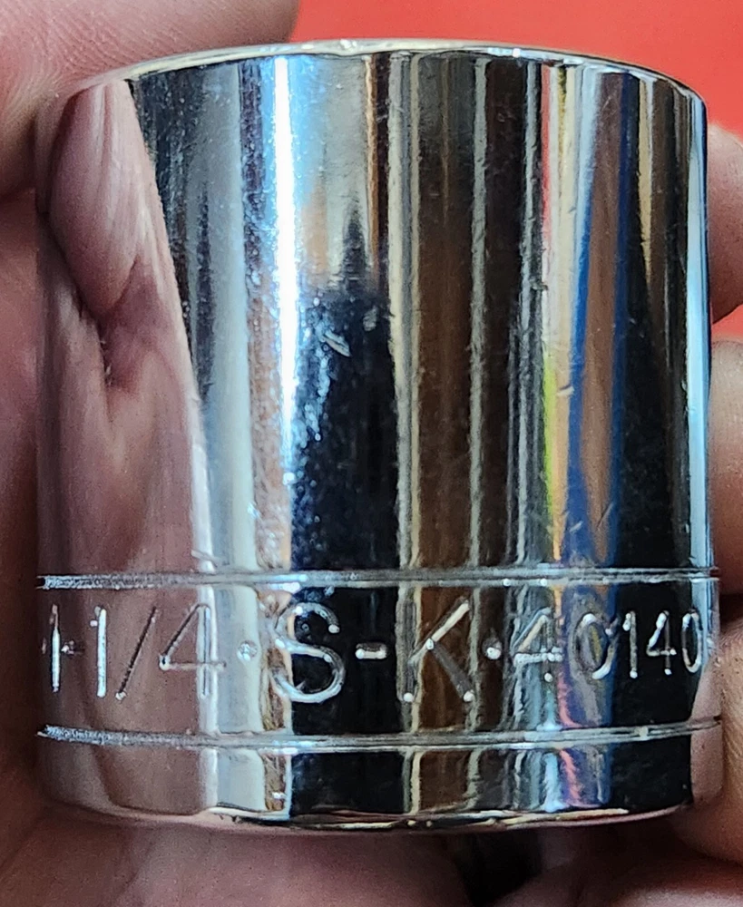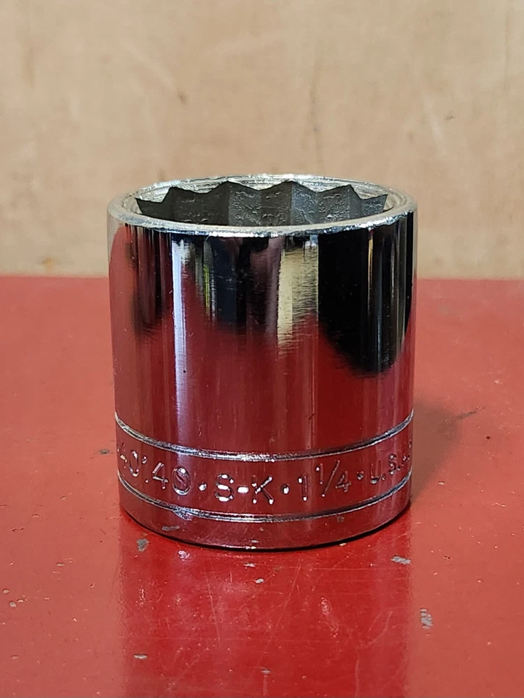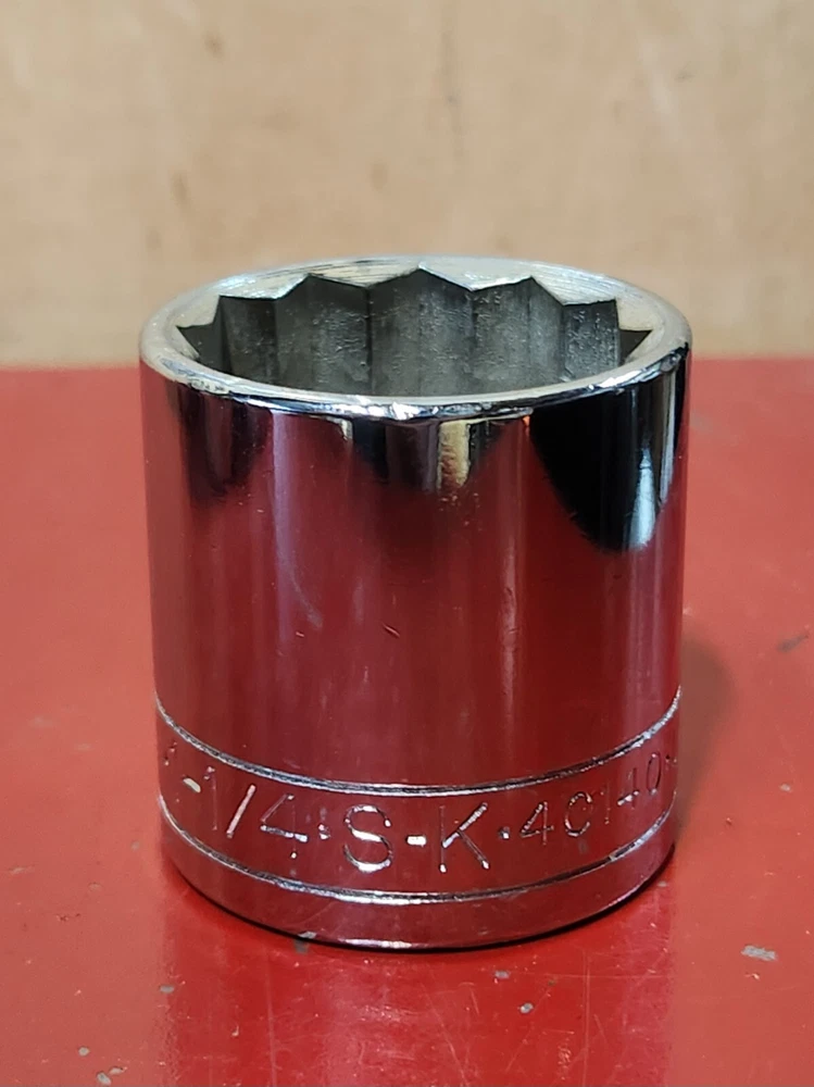SK 1/2" Drive 1-1/4" Shallow Socket 40140 12pt Many Styles NOS Vintage USA New old stock S-K Tools USA 1/2" drive 1-1/4" sockets. They are all model 40140 but from different eras so I've offered the option to select the style you prefer, but if this doesn't matter than you can pick any one of them. Some of the same style may still have some slight variances. Have shelf wear including light scratches, light blemishes, small nicks, and other light signs of wear from long-term storage. The level of shelf wear varies but all are unused.