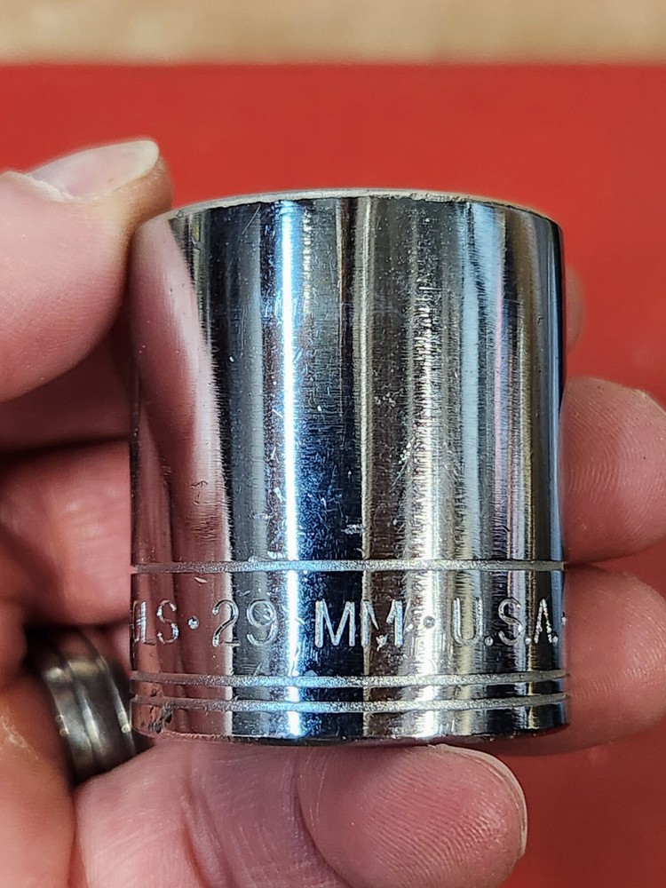 SK 1/2" Drive 29mm Shallow Socket 40329 12pt Many Styles NOS Vintage USA New old stock S-K Tools USA 1/2" drive 29mm sockets. They are all model 40329 but from different eras so I've offered the option to select the style you prefer, but if this doesn't matter than you can pick any one of them. Some of the same style may still have some slight variances. Have shelf wear including light scratches, light blemishes, small nicks, and other light signs of wear from long-term storage. The level of shelf wear varies but all are unused.