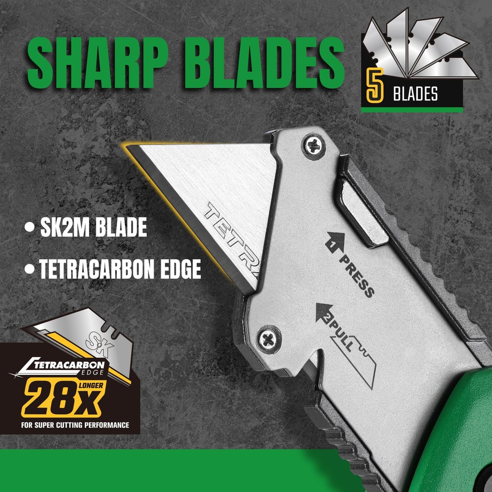 Folding Utility Knife Box Cutter with 5 Razor Blades Pocket Tool